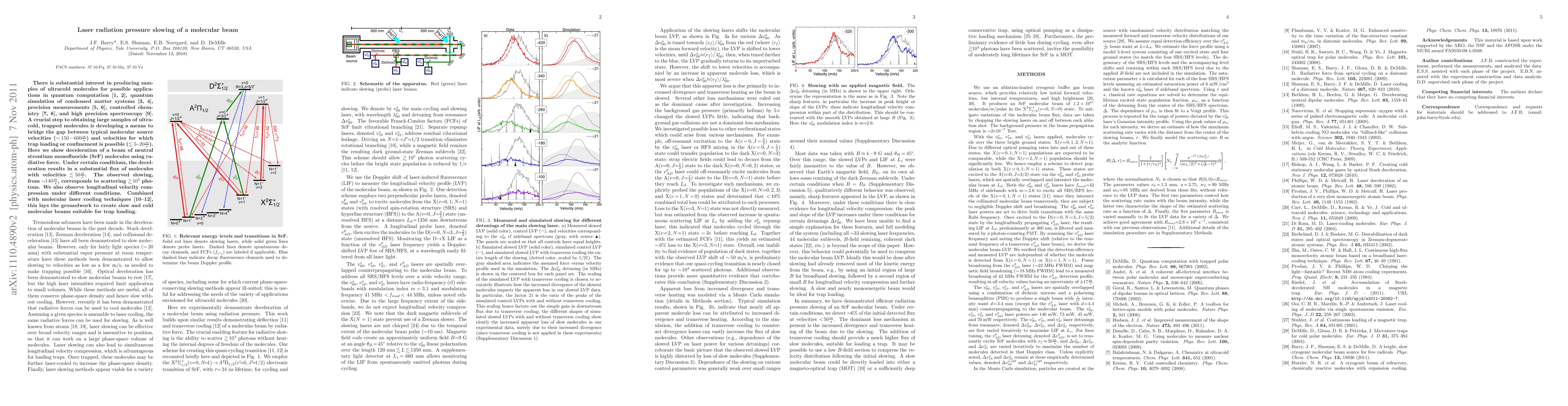 This paper demonstrates the deceleration of a molecular beam of neutral strontium monofluoride (SrF) using laser radiation pressure, achieving velocities below 50 m/s, which is crucial for trapping and applications in quantum computation and spectroscopy. The method also shows potential for longitudinal velocity compression, paving the way for creating ultracold molecular beams.
