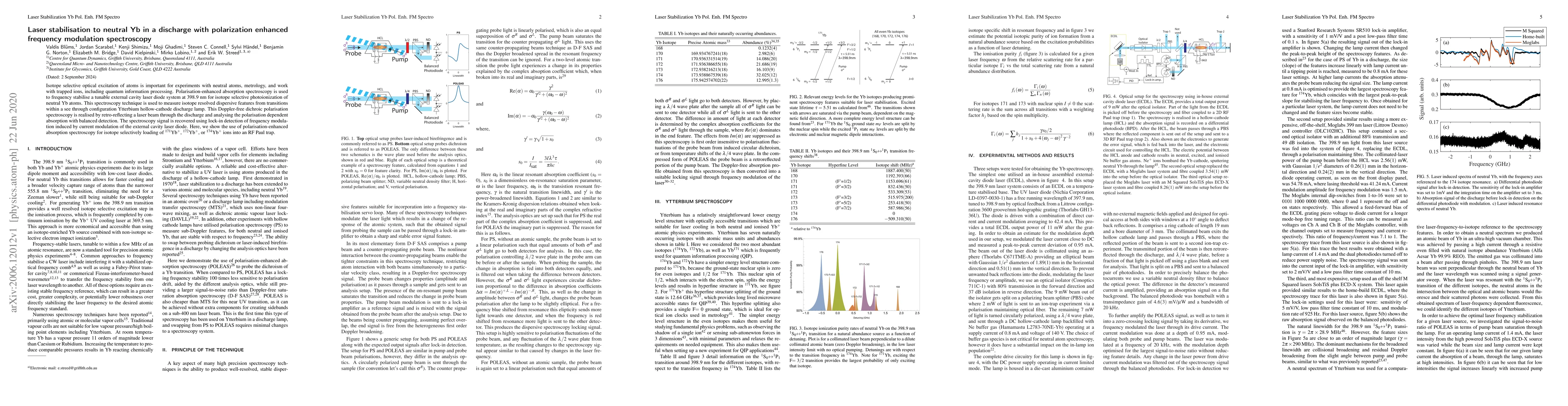 Isotope selective optical excitation of atoms is important for experiments with neutral atoms, metrology, and work with trapped ions, including quantum information processing. Polarization-enhanced absorption spectroscopy is used to frequency stabilise a tunable external cavity laser diode system at 398.9 nm for isotope selective photoionization of neutral Yb atoms. This spectroscopy technique is used to measure isotope resolved dispersive features from transitions within a see through configuration Ytterbium hollow-cathode discharge lamp. This Doppler-free dichroic polarization spectroscopy is realised by retro-reflecting a laser beam through the discharge and analysing the polarization dependent absorption with balanced detection. The spectroscopy signal is recovered using lock-in detection of frequency modulation induced by current modulation of the external cavity laser diode. Here, we show the use of polarization-enhanced absorption spectroscopy for isotope selectively loading of $^{171}$Yb$^+$, $^{172}$Yb$^+$, or $^{174}$Yb$^+$ ions into an RF Paul trap.