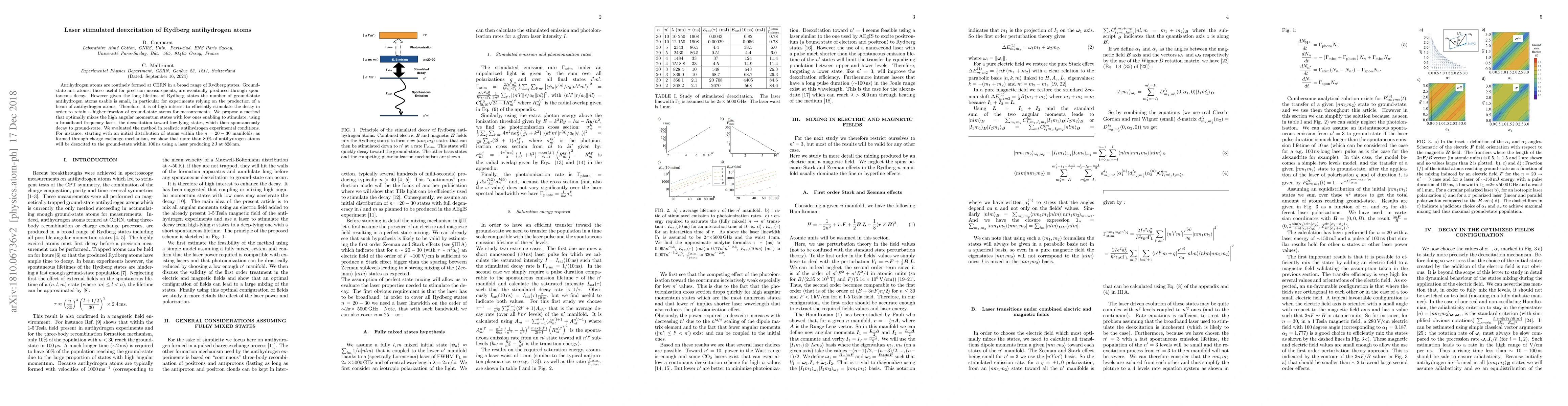 Antihydrogen atoms are routinely formed at CERN in a broad range of Rydberg states. Ground-state anti-atoms, those useful for precision measurements, are eventually produced through spontaneous decay. However given the long lifetime of Rydberg states the number of ground-state antihydrogen atoms usable is small, in particular for experiments relying on the production of a beam of antihydrogen atoms. Therefore, it is of high interest to efficiently stimulate the decay in order to retain a higher fraction of ground-state atoms for measurements. We propose a method that optimally mixes the high angular momentum states with low ones enabling to stimulate, using a broadband frequency laser, the deexcitation toward low-lying states, which then spontaneously decay to ground-state. We evaluated the method in realistic antihydrogen experimental conditions. For instance, starting with an initial distribution of atoms within the $n=20-30$ manifolds, as formed through charge exchange mechanism, we show that more than 80\% of antihydrogen atoms will be deexcited to the ground-state within 100 ns using a laser producing 2 J at 828 nm.