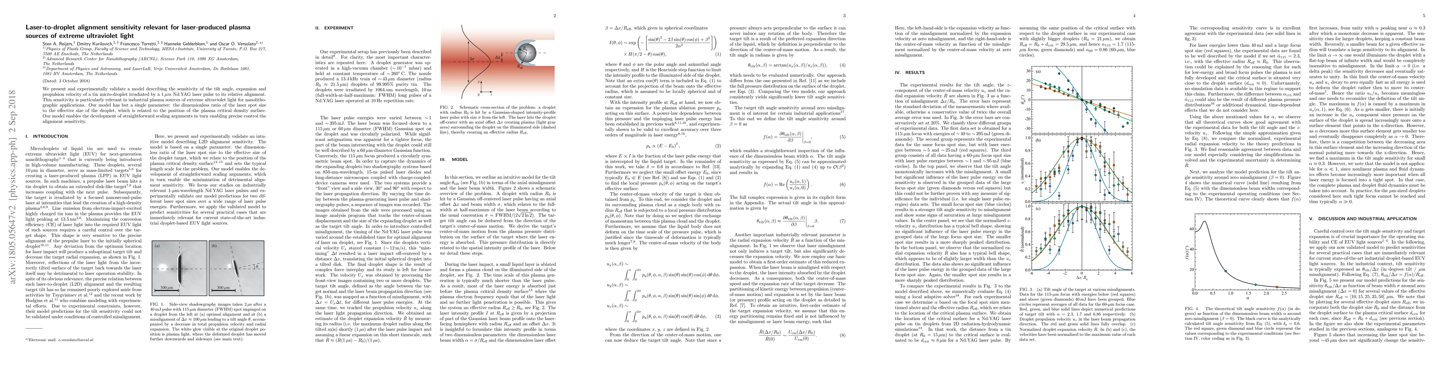 This paper experimentally validates a model predicting the alignment sensitivity of tin micro-droplets irradiated by a laser, crucial for extreme ultraviolet light sources used in nanolithography. The model uses a single parameter, the ratio of laser spot size to droplet size, to enable precise control over alignment sensitivity.