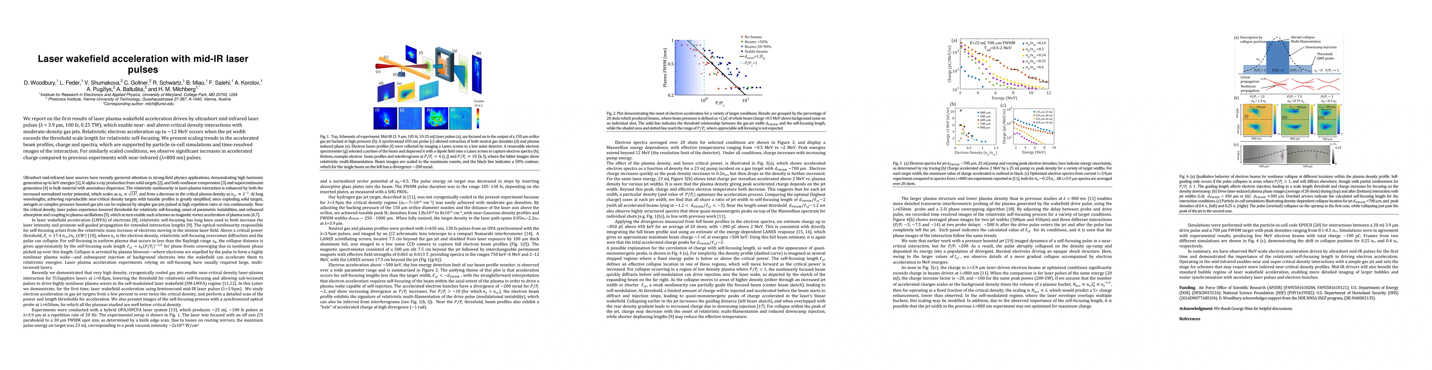 The research utilized ultrashort mid-IR laser pulses (\(\lambda= 3.9 \mu m\), 100 fs, 0.25 TW) focused on moderate-density gas jets to drive plasma wakefield acceleration, enabling near- and above-critical density interactions.
