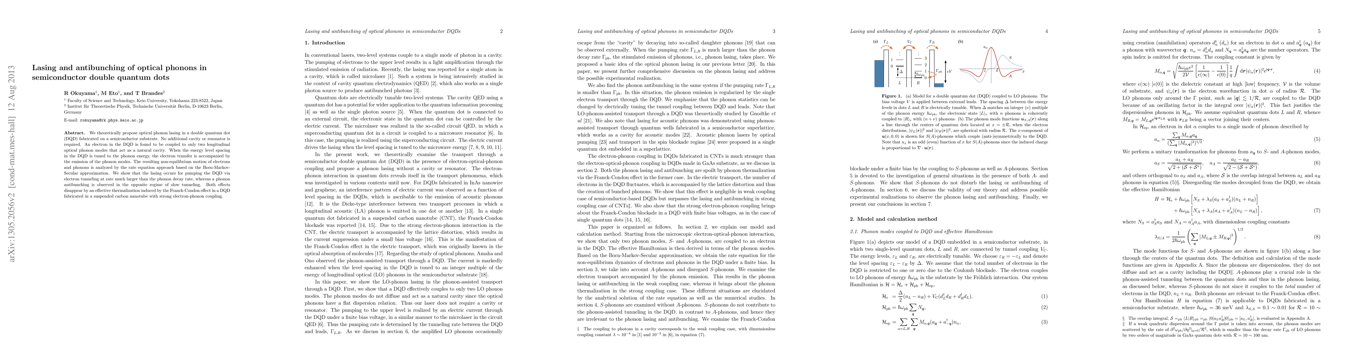 Researchers propose a new method for optical phonon lasing in double quantum dots without an additional cavity, using only the natural coupling of electrons to longitudinal optical phonons. They also discover phonon antibunching under certain conditions, which disappears through thermalization in a suspended carbon nanotube.