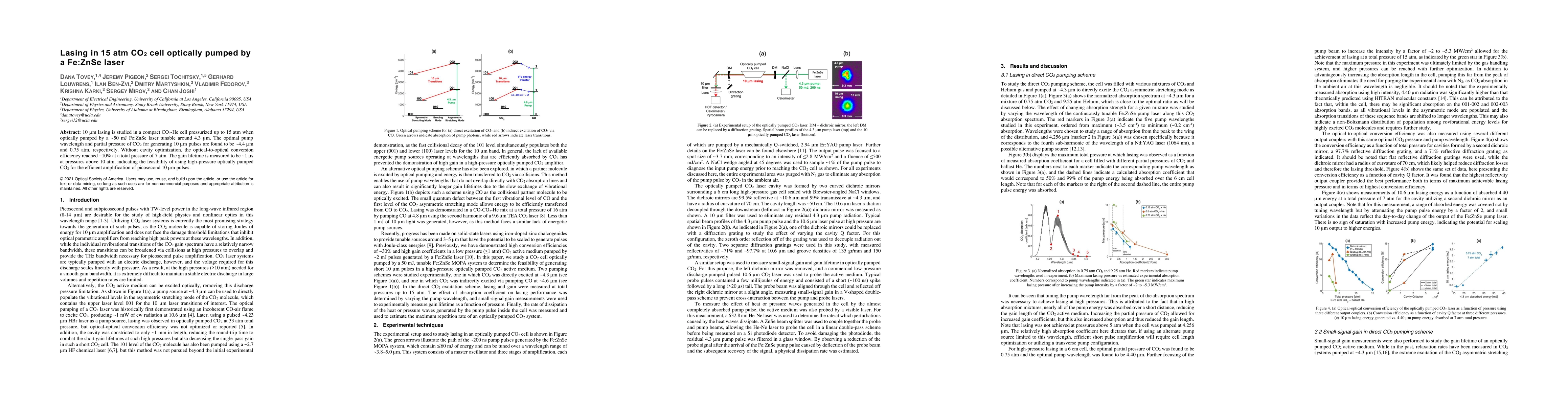 This study investigates 10 μm lasing in a CO2-He cell at pressures up to 15 atm, optically pumped by a Fe:ZnSe laser. The optimal conditions for generating 10 μm pulses are found to be a pump wavelength of ~4.4 μm and a CO2 partial pressure of 0.75 atm, achieving ~10% optical-to-optical conversion efficiency at 7 atm without cavity optimization.