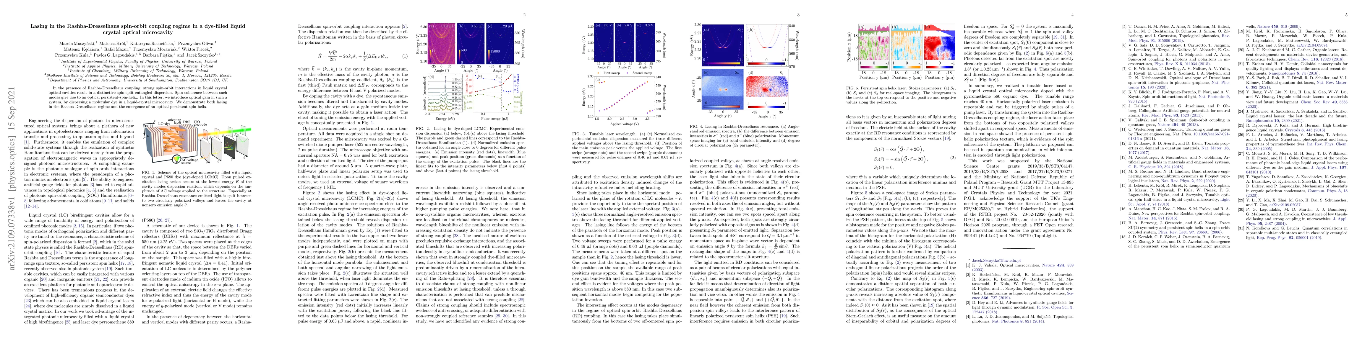 This paper demonstrates lasing in dye-filled liquid crystal optical microcavities under the influence of Rashba-Dresselhaus spin-orbit coupling, showing the emergence of an optical persistent spin helix due to spin coherence between spin-split entangled modes.