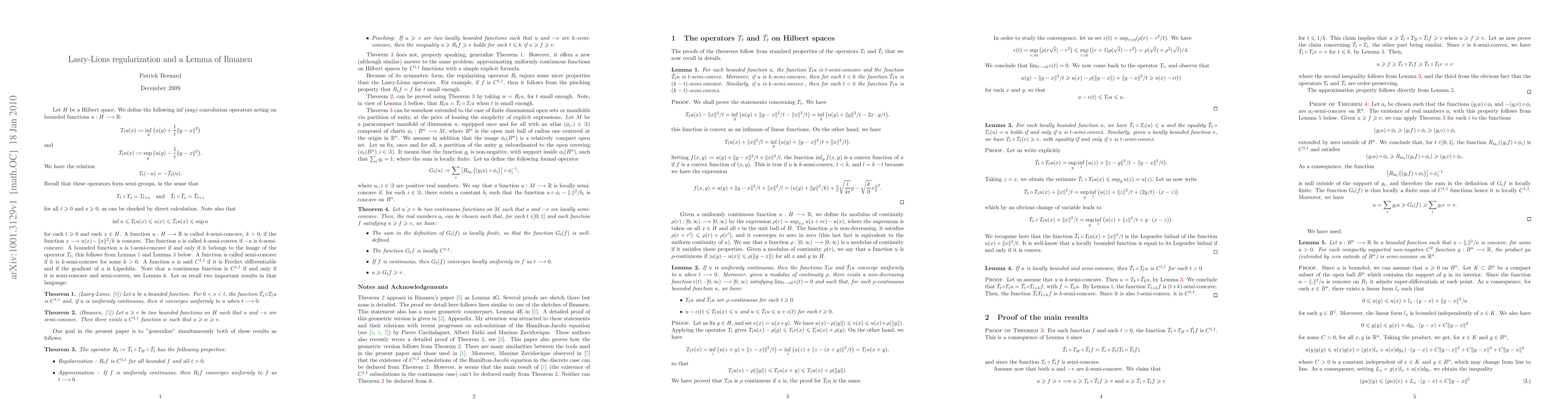 The paper provides a self-contained proof of Ilmanen's Lemma using Lasry-Lions regularization, focusing on approximating uniformly continuous functions on Hilbert spaces by C1,1 functions with an explicit formula.
