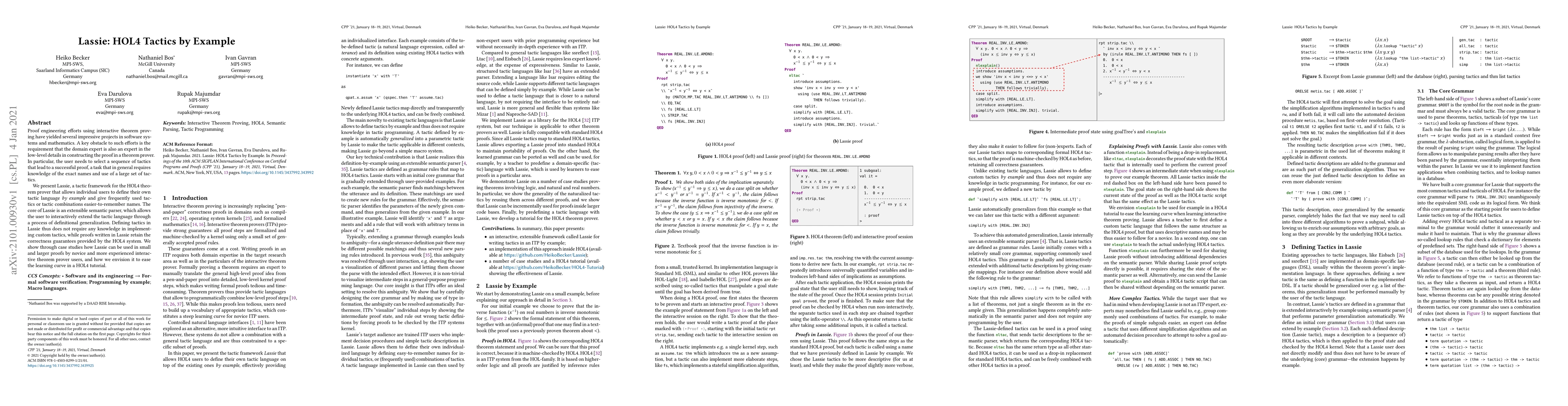 Lassie is a tactic framework for the HOL4 theorem prover that enables users to define their own tactic language through examples, simplifying the process of selecting and naming tactics. It facilitates both novice and experienced users in constructing proofs without requiring deep knowledge of low-level tactic implementation.