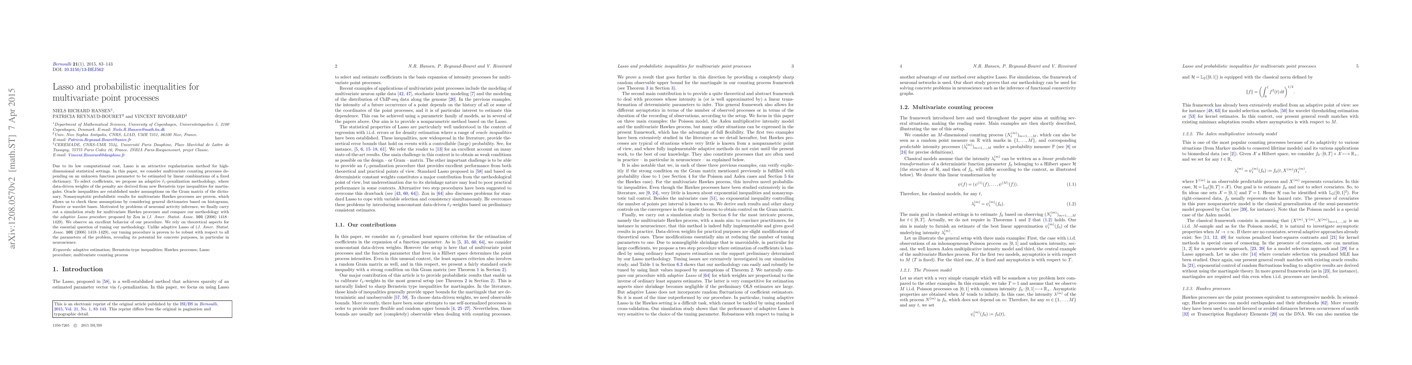 Researchers developed a new method for estimating multivariate point processes using Lasso regularization and adaptive $ extit{1}$-penalization, achieving nonasymptotic probabilistic results that outperform existing methods in simulations of neuronal activity inference.