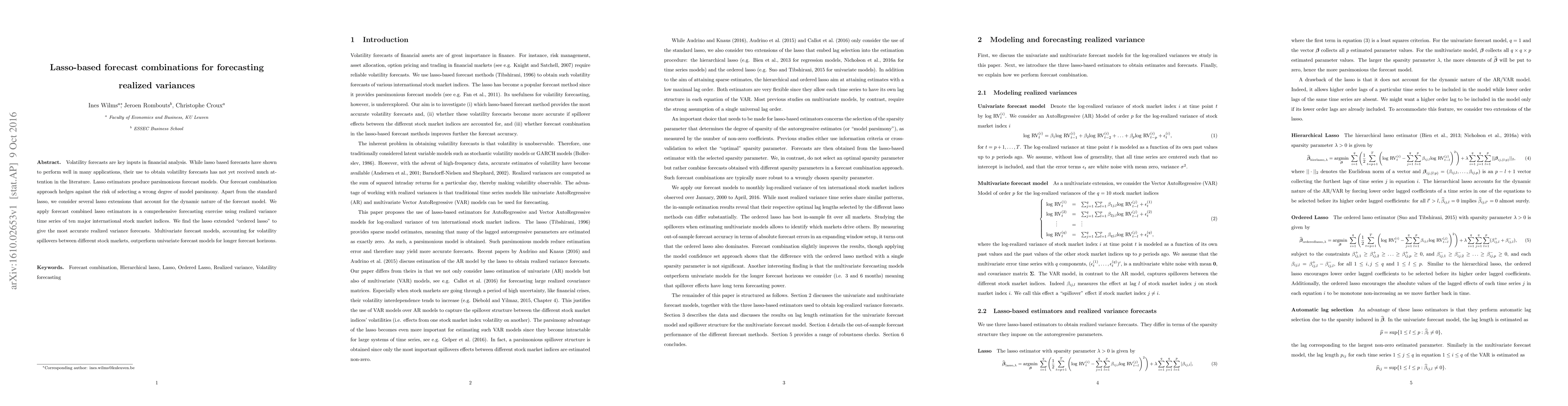 This study introduces a new approach to forecasting volatility using lasso-based forecast combinations, which outperform traditional univariate models for longer horizons, especially when accounting for spillovers between stock markets.