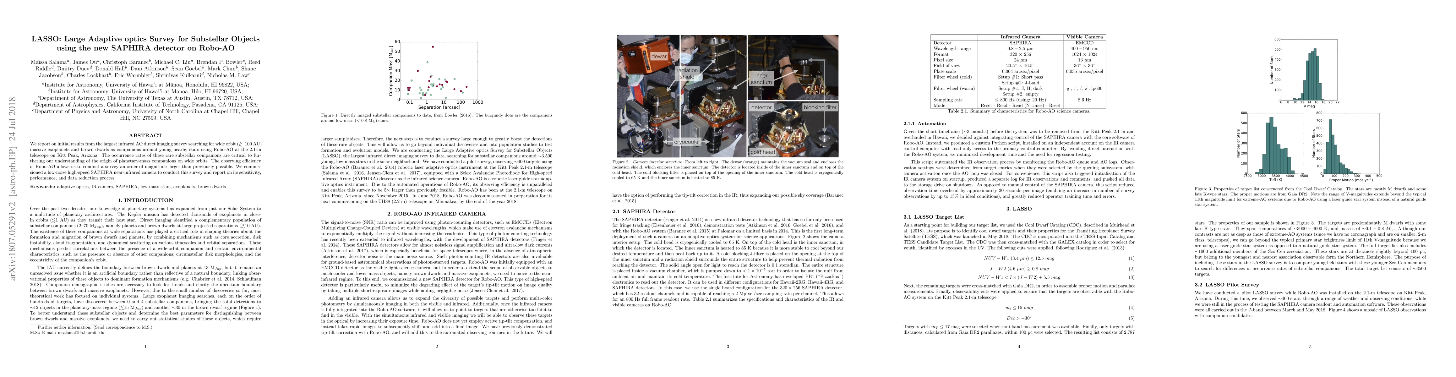This paper presents initial findings from a large infrared adaptive optics survey using Robo-AO and the new SAPHIRA detector to search for massive exoplanets and brown dwarfs in wide orbits around nearby stars. The study highlights the survey's efficiency and the camera's performance in detecting these rare substellar companions.
