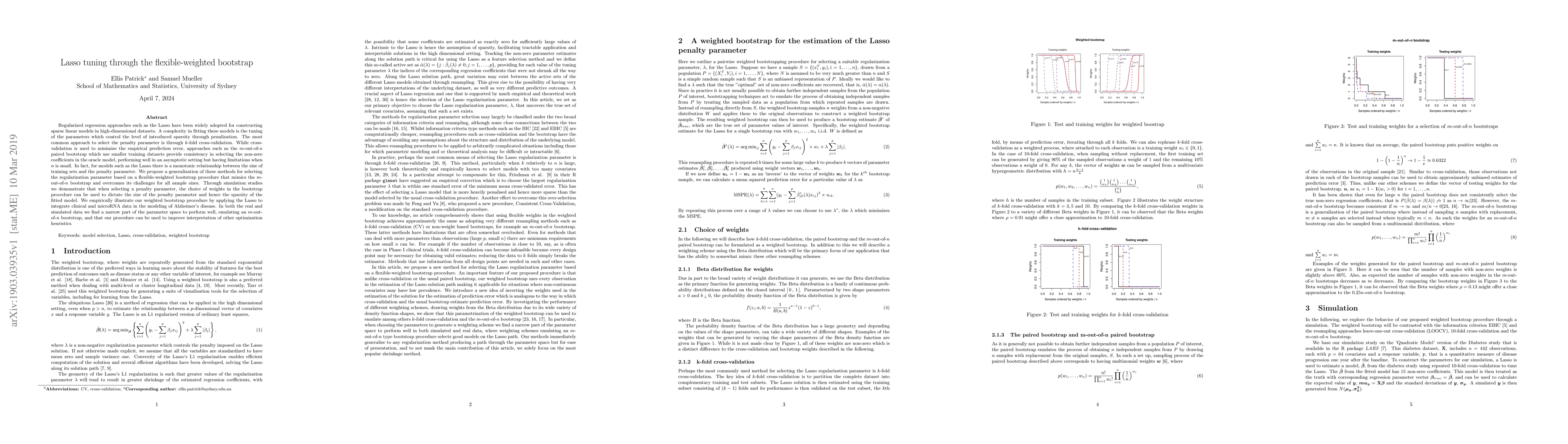 This paper proposes a flexible-weighted bootstrap method for tuning the regularization parameter in Lasso regression, addressing limitations of traditional cross-validation and $m$-out-of-$n$ bootstrap approaches, especially for small sample sizes. The method allows for control over model sparsity and is demonstrated to improve model performance in both simulated and real-world Alzheimer's disease data.