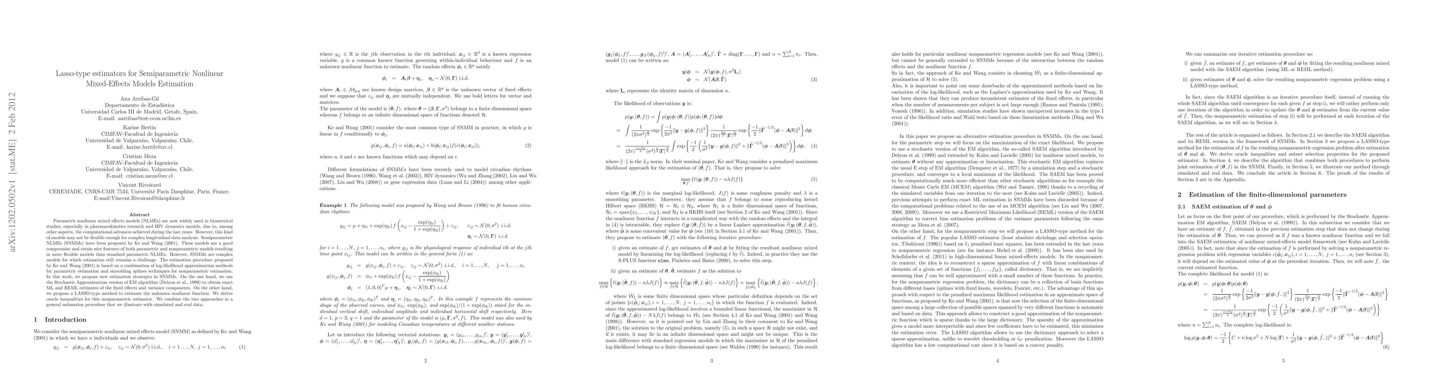 This paper proposes new estimation strategies for Semiparametric Nonlinear Mixed-Effects Models, using a combination of the Stochastic Approximation EM algorithm and LASSO-type methods to estimate fixed effects, variance components, and nonlinear functions.