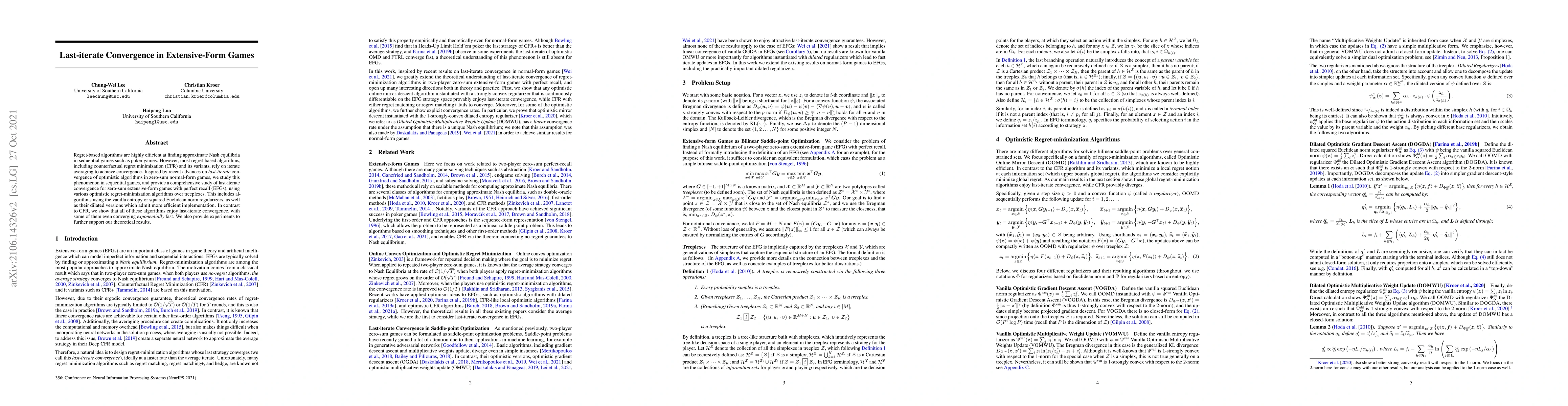This paper explores last-iterate convergence in zero-sum extensive-form games, demonstrating that optimistic regret-minimization algorithms converge to Nash equilibria without relying on iterate averaging, unlike counterfactual regret minimization (CFR). It shows that these algorithms achieve fast convergence, some even exponentially, and supports these findings with experimental validation.