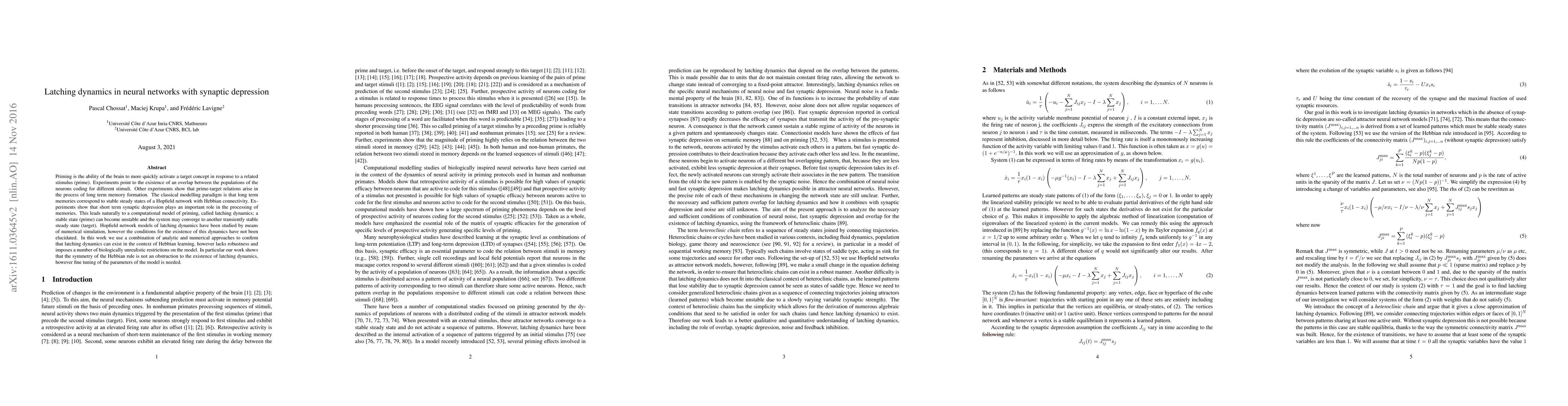 This paper investigates the latching dynamics in neural networks with synaptic depression, confirming its existence in Hopfield networks under Hebbian learning but highlighting its lack of robustness and biologically unrealistic constraints, necessitating fine-tuned parameter adjustments.