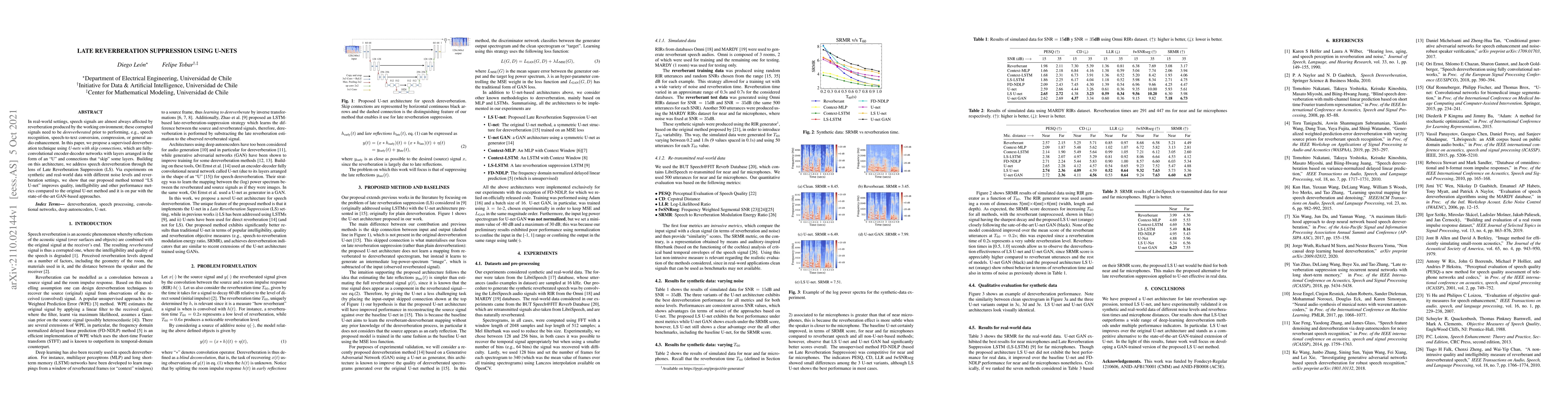 In real-world settings, speech signals are almost always affected by reverberation produced by the working environment; these corrupted signals need to be \emph{dereverberated} prior to performing, e.g., speech recognition, speech-to-text conversion, compression, or general audio enhancement. In this paper, we propose a supervised dereverberation technique using \emph{U-nets with skip connections}, which are fully-convolutional encoder-decoder networks with layers arranged in the form of an "U" and connections that "skip" some layers. Building on this architecture, we address speech dereverberation through the lens of Late Reverberation Suppression (LS). Via experiments on synthetic and real-world data with different noise levels and reverberation settings, we show that our proposed method termed "LS U-net" improves quality, intelligibility and other performance metrics compared to the original U-net method and it is on par with the state-of-the-art GAN-based approaches.