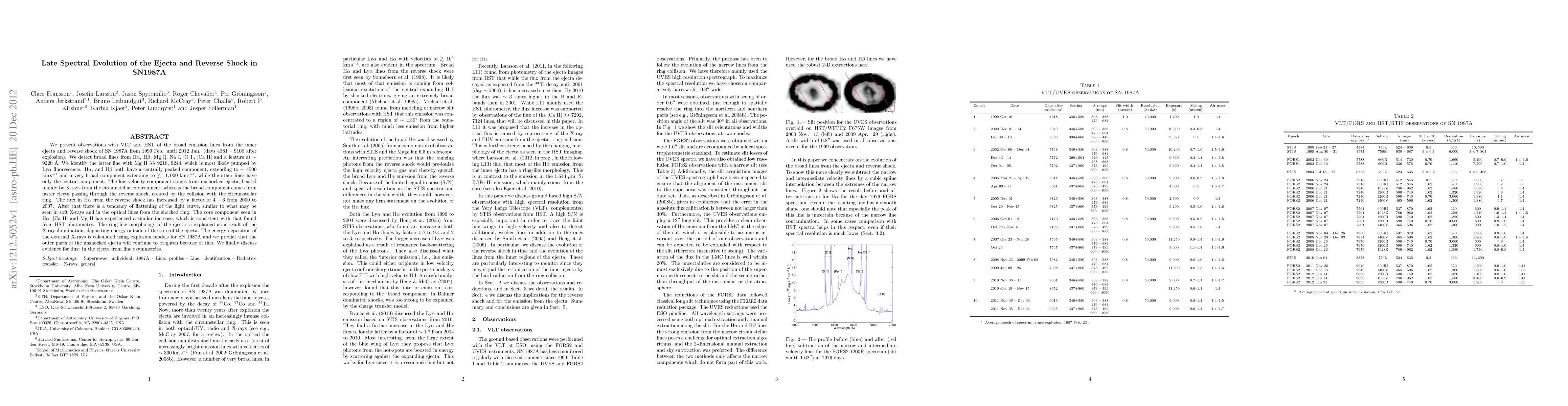 This paper investigates the late spectral evolution of SN 1987A's ejecta and reverse shock, observing broad emission lines from 1999 to 2012. The study finds that the reverse shock's H-alpha flux increased significantly, while the unshocked ejecta's core component also brightened, suggesting ongoing external X-ray illumination.