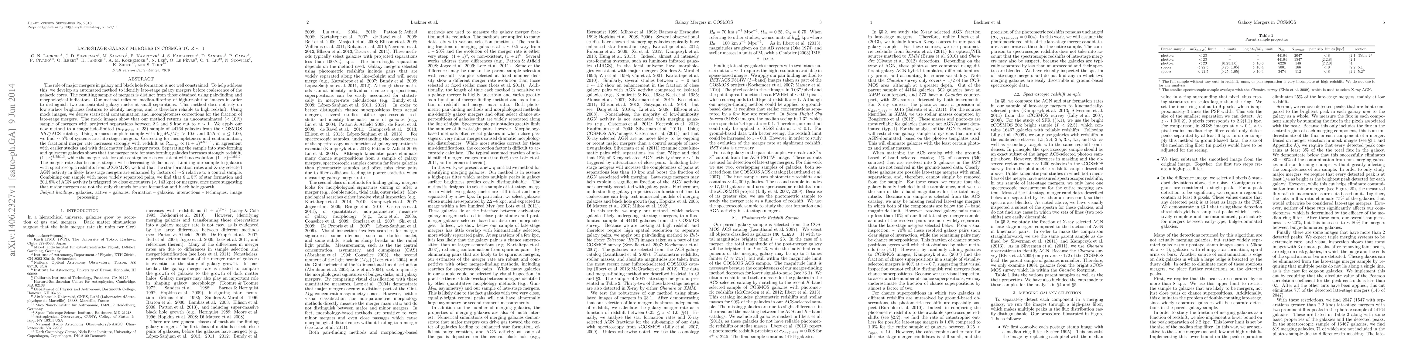 A new method identifies late-stage galaxy mergers in a sample of 44,000 galaxies, revealing that ~5% of these systems undergo major mergers before coalescence, with merger rates increasing strongly with redshift.