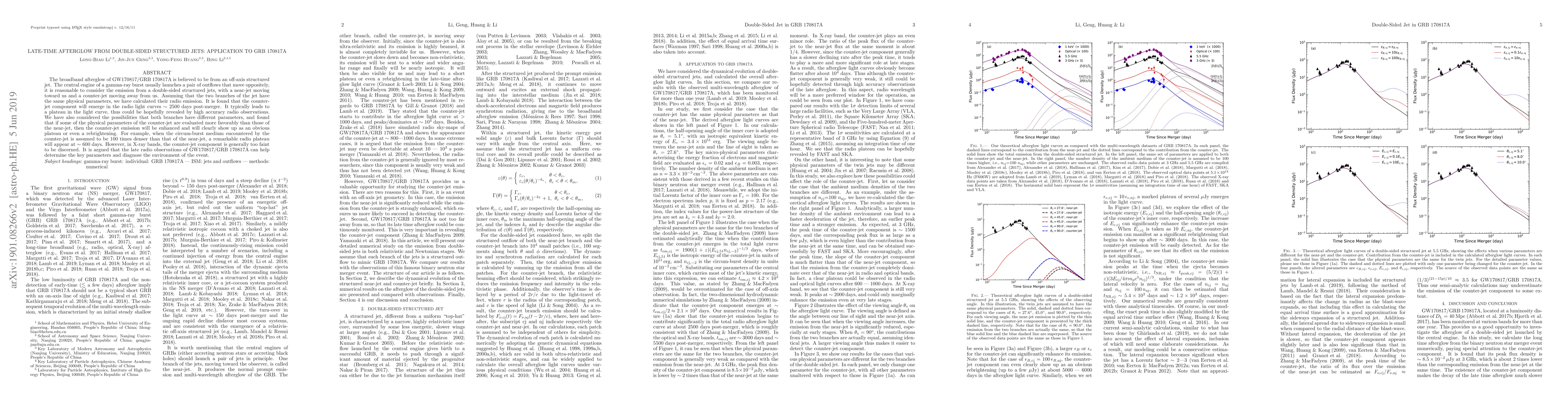 This paper investigates the late-time afterglow of GRB 170817A, attributing it to a double-sided structured jet. The study predicts that the counter-jet component will emerge in radio light curves around 2500 days post-merger, potentially revealing a plateau, which could be detected by high-accuracy radio observations.