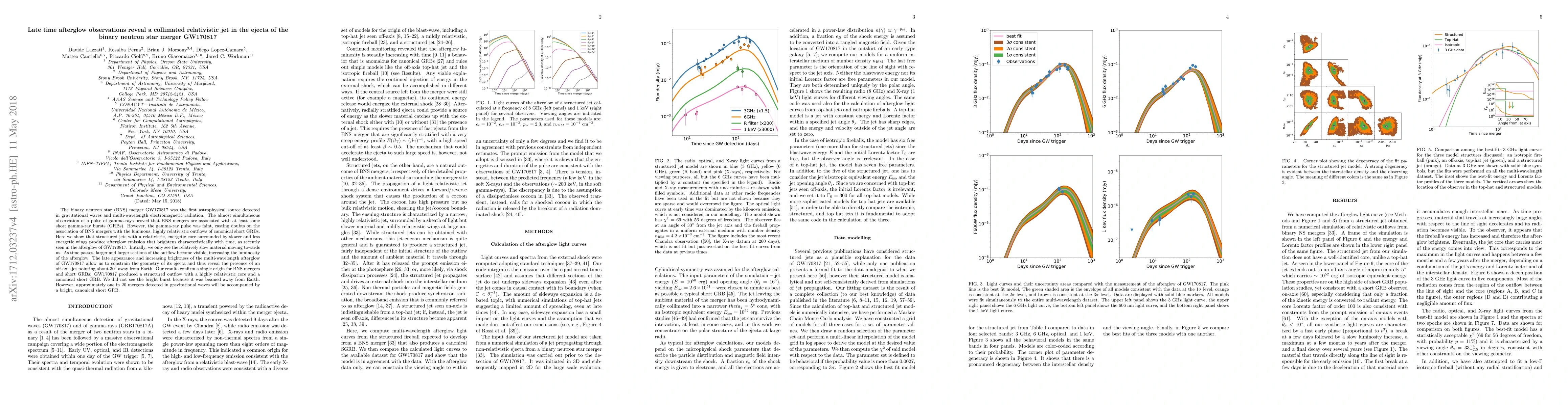 The late-time afterglow of the binary neutron star merger GW170817 reveals a collimated relativistic jet, indicating that such mergers can produce structured outflows with relativistic cores, similar to canonical short gamma-ray bursts, even if the initial burst is not directly observed. This observation supports the idea that a fraction of these mergers will produce bright, detectable short GRBs.