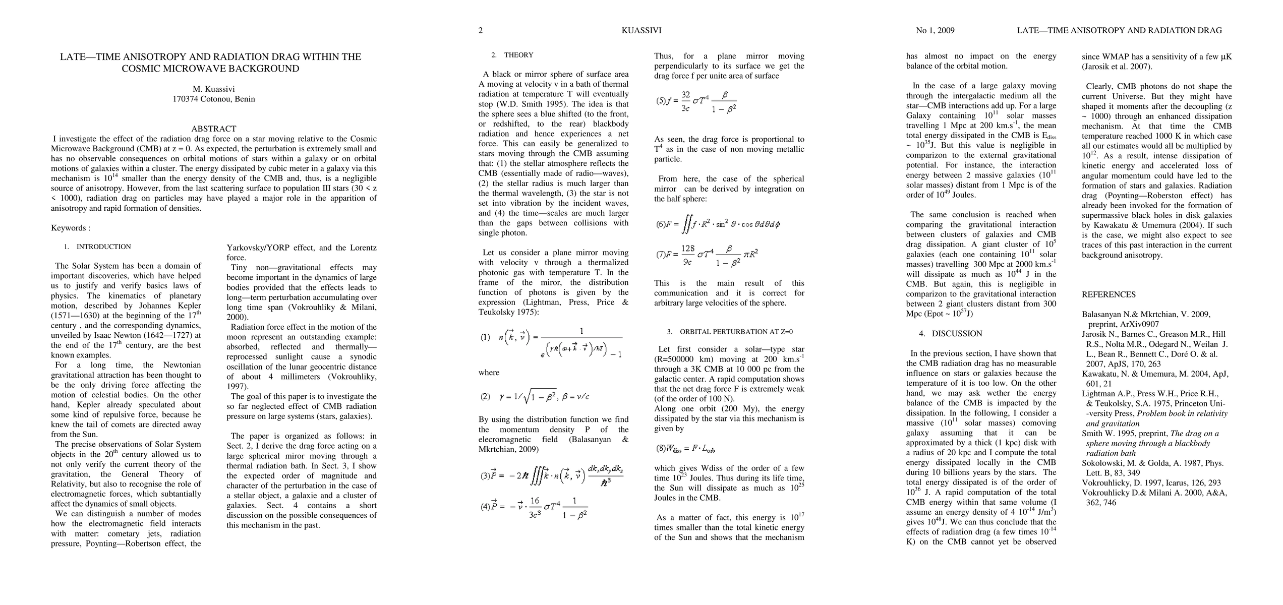 I investigate the effect of the radiation drag force on a star moving relative to the Cosmic Microwave Background (CMB) at z = 0. As expected, the perturbation is extremely small and has no observable consequences on orbital motions of stars within a galaxy or on orbital motions of galaxies within a cluster. The energy dissipated by cubic meter in a galaxy via this mechanism is 10^{14} smaller than the energy density of the CMB and, thus, is a negligible source of anisotropy. However, from the last scattering surface to population III stars (30 < z < 1000), radiation drag on particles may have played a major role in the apparition of anisotropy and rapid formation of densities.