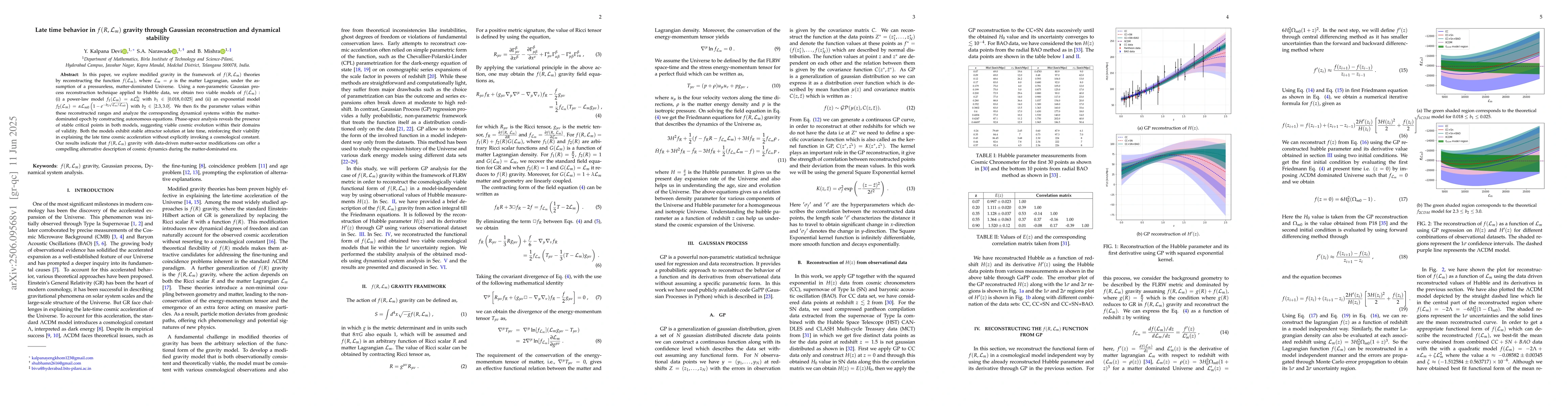 In this paper, we explore modified gravity in the framework of $f(R, \mathcal{L}_m)$ theories by reconstructing the function $f(\mathcal{L}_m)$, where $\mathcal{L}_m = \rho$ is the matter Lagrangian, under the assumption of a pressureless, matter-dominated Universe. Using a non-parametric Gaussian process reconstruction technique applied to Hubble data, we obtain two viable models of $f(\mathcal{L}_m)$ : (i) a power-law model $f_1(\mathcal{L}_m) = \alpha \mathcal{L}_m^{b_1}$ with $b_1 \in [0.018, 0.025]$ and (ii) an exponential model $f_2(\mathcal{L}_m) = \alpha \mathcal{L}_{m0} \left(1 - e^{-b_2 \sqrt{\mathcal{L}_m/\mathcal{L}_{m0}}} \right)$ with $b_2 \in [2.3, 3.0]$. We then fix the parameter values within these reconstructed ranges and analyze the corresponding dynamical systems within the matter-dominated epoch by constructing autonomous equations. Phase-space analysis reveals the presence of stable critical points in both models, suggesting viable cosmic evolution within their domains of validity. Both the models exhibit stable attractor solution at late time, reinforcing their viability in explaining the late time cosmic acceleration without explicitly invoking a cosmological constant. Our results indicate that $f(R, \mathcal{L}_m)$ gravity with data-driven matter-sector modifications can offer a compelling alternative description of cosmic dynamics during the matter-dominated era.