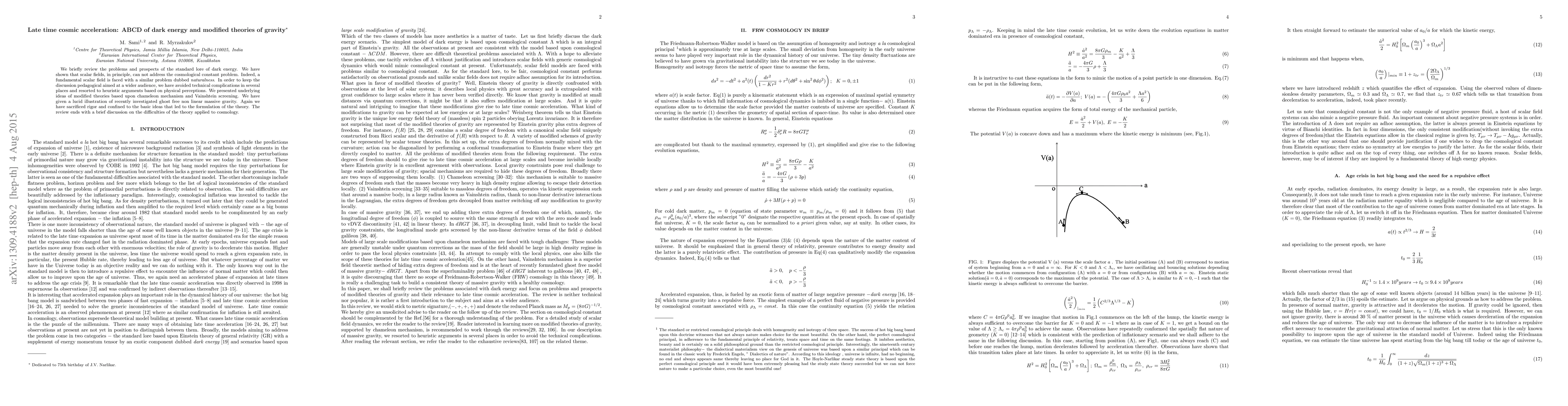 We briefly review the problems and prospects of the standard lore of dark energy and notice that the cosmological constant problems are often over emphasized. In order to keep the discussion pedagogical aimed at a wider audience, we have avoided technical complications in several places and resorted to heuristic arguments based on physical perceptions. We presented underlying ideas of modified theories based upon chameleon mechanism and Vainshtein screening. We have given a lucid illustration of recently investigated ghost free non linear massive gravity. Again we have sacrificed rigor and confined to the basic ideas that led to the formulation of $dRGT$. The review ends with a brief discussion on the difficulties of the theory applied to cosmology with an optimism that a consistent solution of the problem is round the corner.