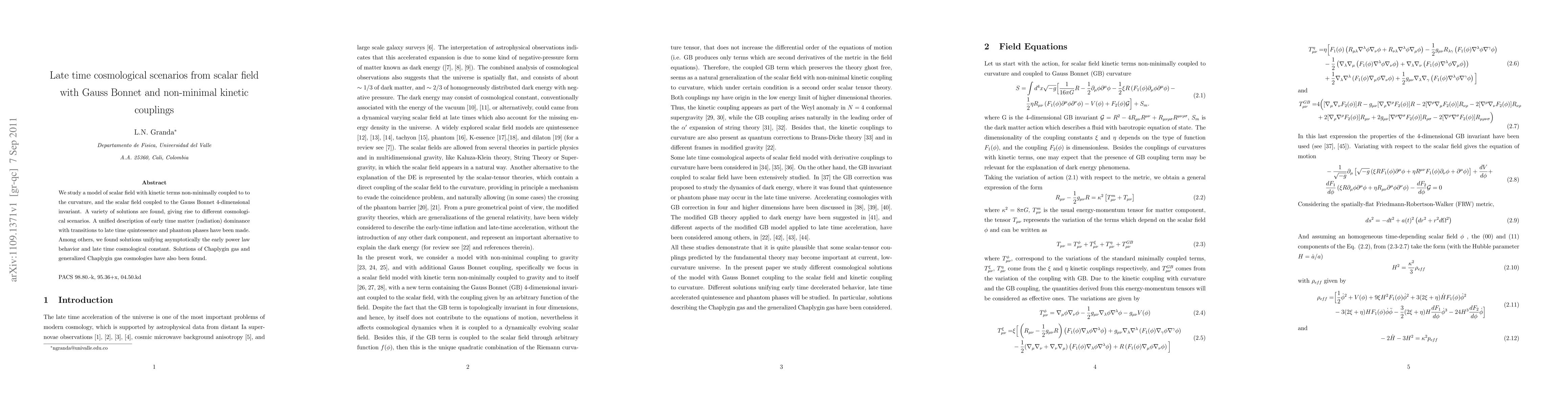 This paper explores a scalar field model with non-minimal kinetic and Gauss Bonnet couplings, revealing diverse cosmological solutions. It unifies early radiation dominance with late-time quintessence and phantom phases, including solutions for power law behavior and the cosmological constant.