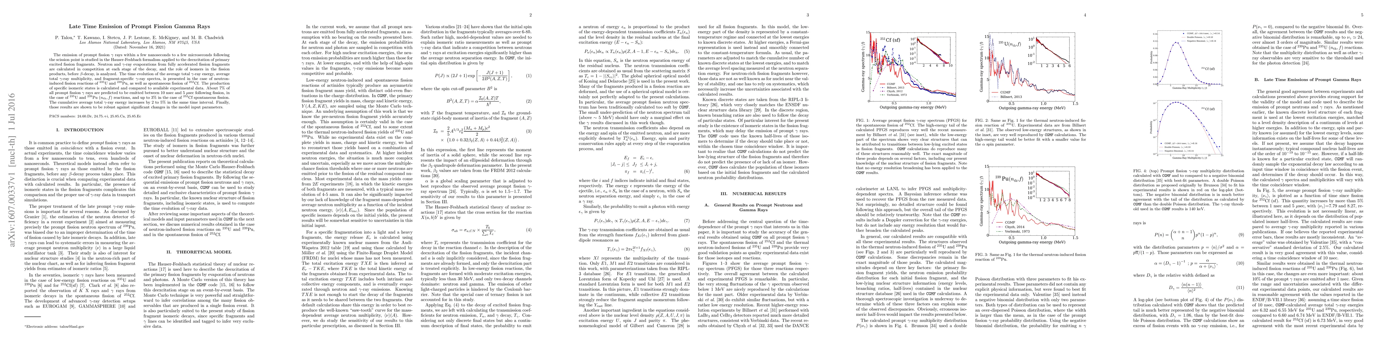 This paper investigates the emission of prompt fission gamma rays within nanoseconds to microseconds post-scission in fission reactions using the Hauser-Feshbach formalism. It analyzes the time evolution of gamma-ray energy, multiplicity, and spectra for $^{235}$U, $^{239}$Pu, and $^{252}$Cf, finding that about 7% of prompt fission gamma rays are emitted late, with results validated against experimental data.