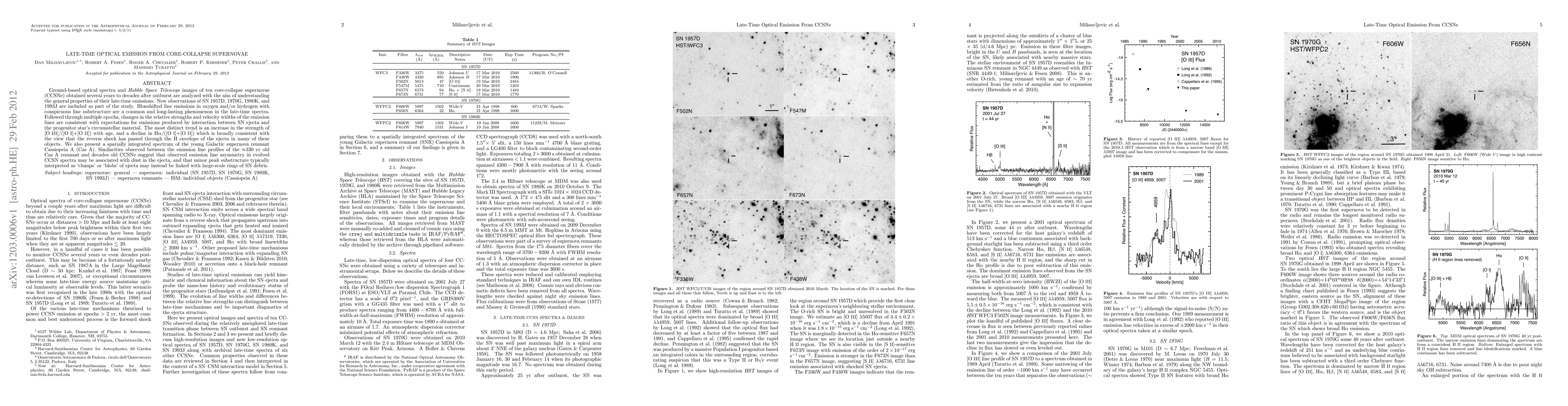 This study analyzes late-time optical spectra and images of ten core-collapse supernovae, revealing persistent blueshifted line emissions indicative of interactions with circumstellar material. The observed increase in [O III] and decline in Halpha suggest the reverse shock has passed through the H envelope, while similarities between the spectra of Cas A and older CCSNe suggest dust and large-scale rings may cause emission line asymmetries.