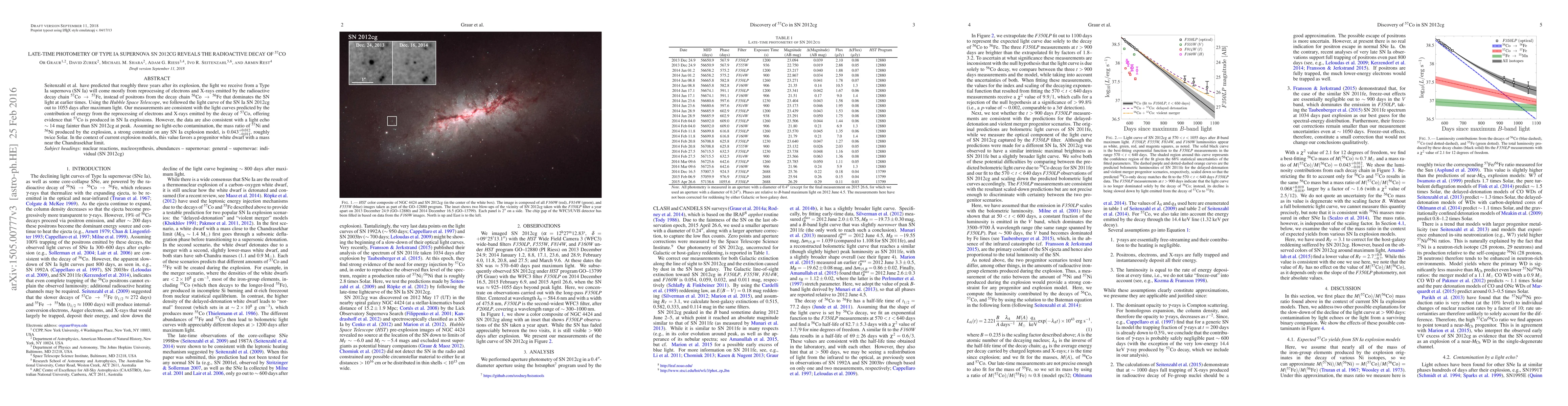 Seitenzahl et al. (2009) have predicted that roughly three years after its explosion, the light we receive from a Type Ia supernova (SN Ia) will come mostly from reprocessing of electrons and X-rays emitted by the radioactive decay chain $^{57}{\rm Co}~\to~^{57}{\rm Fe}$, instead of positrons from the decay chain $^{56}{\rm Co}~\to~^{56}{\rm Fe}$ that dominates the SN light at earlier times. Using the {\it Hubble Space Telescope}, we followed the light curve of the SN Ia SN 2012cg out to $1055$ days after maximum light. Our measurements are consistent with the light curves predicted by the contribution of energy from the reprocessing of electrons and X-rays emitted by the decay of $^{57}$Co, offering evidence that $^{57}$Co is produced in SN Ia explosions. However, the data are also consistent with a light echo $\sim14$ mag fainter than SN 2012cg at peak. Assuming no light-echo contamination, the mass ratio of $^{57}$Ni and $^{56}$Ni produced by the explosion, a strong constraint on any SN Ia explosion model, is $0.043^{+0.012}_{-0.011}$, roughly twice Solar. In the context of current explosion models, this value favors a progenitor white dwarf with a mass near the Chandrasekhar limit.