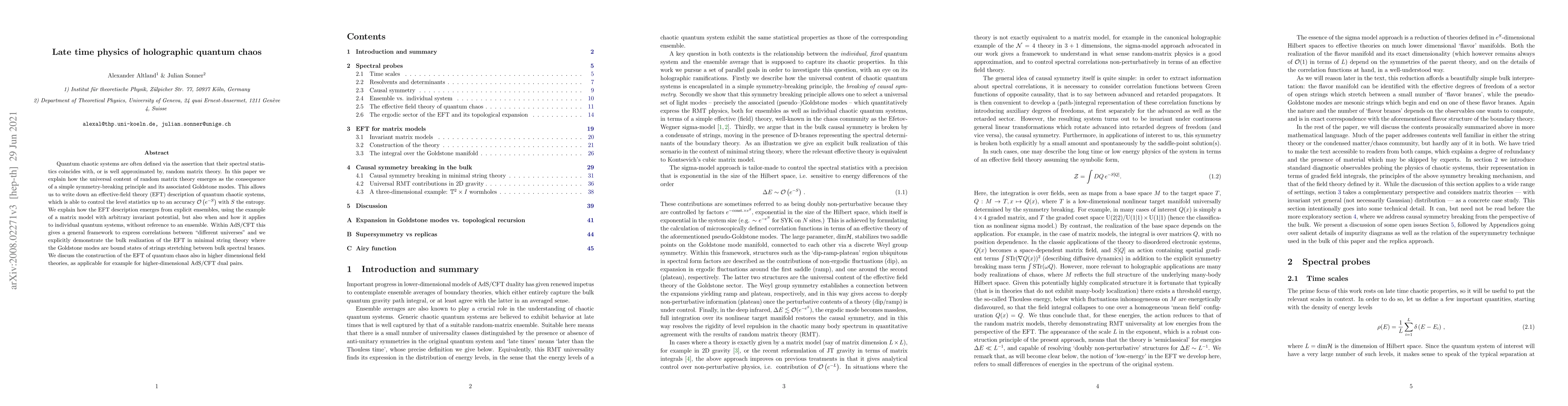 Researchers develop an effective-field theory framework to describe quantum chaotic systems, allowing for accurate control over spectral statistics with high accuracy. This framework has implications for understanding correlations between different universes in AdS/CFT and higher-dimensional field theories.