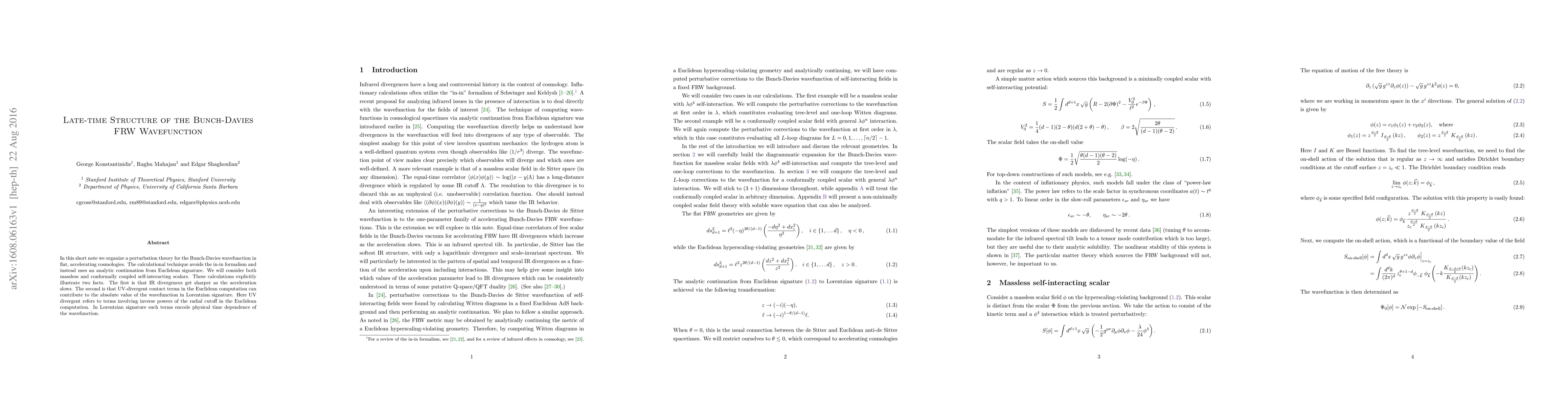 In this short note we organize a perturbation theory for the Bunch-Davies wavefunction in flat, accelerating cosmologies. The calculational technique avoids the in-in formalism and instead uses an analytic continuation from Euclidean signature. We will consider both massless and conformally coupled self-interacting scalars. These calculations explicitly illustrate two facts. The first is that IR divergences get sharper as the acceleration slows. The second is that UV-divergent contact terms in the Euclidean computation can contribute to the absolute value of the wavefunction in Lorentzian signature. Here UV divergent refers to terms involving inverse powers of the radial cutoff in the Euclidean computation. In Lorentzian signature such terms encode physical time dependence of the wavefunction.