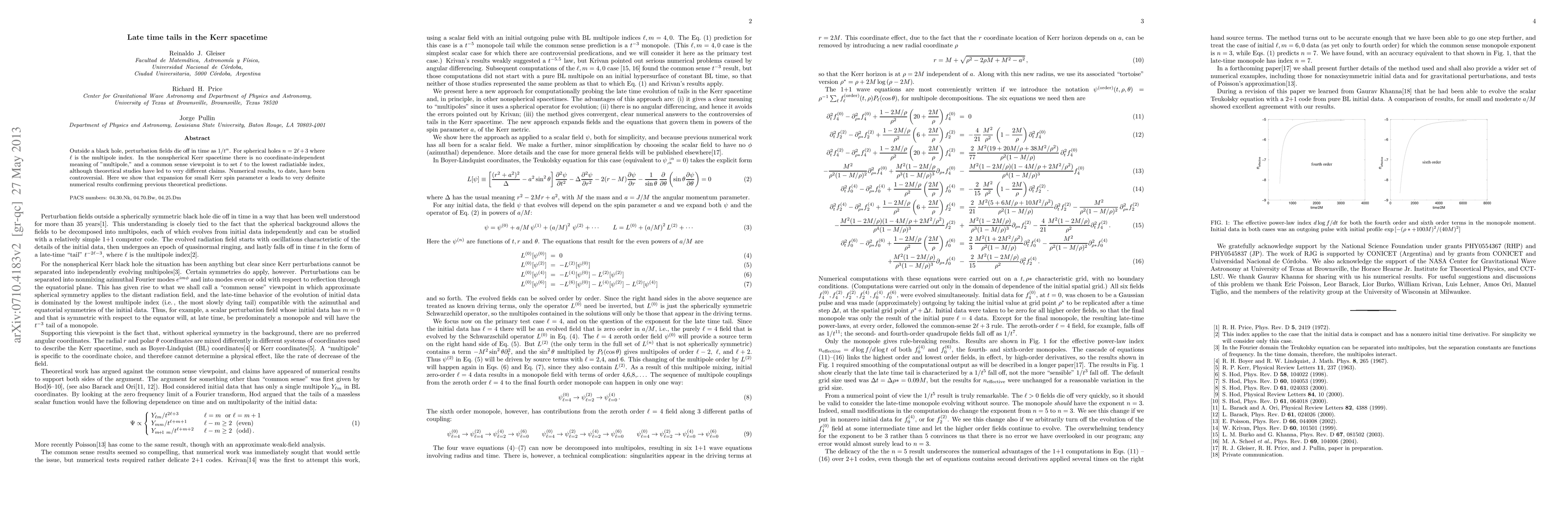 Outside a black hole, perturbation fields die off in time as $1/t^n$. For spherical holes $n=2\ell+3$ where $\ell$ is the multipole index. In the nonspherical Kerr spacetime there is no coordinate-independent meaning of "multipole," and a common sense viewpoint is to set $\ell$ to the lowest radiatiable index, although theoretical studies have led to very different claims. Numerical results, to date, have been controversial. Here we show that expansion for small Kerr spin parameter $a$ leads to very definite numerical results confirming previous theoretical analyses.