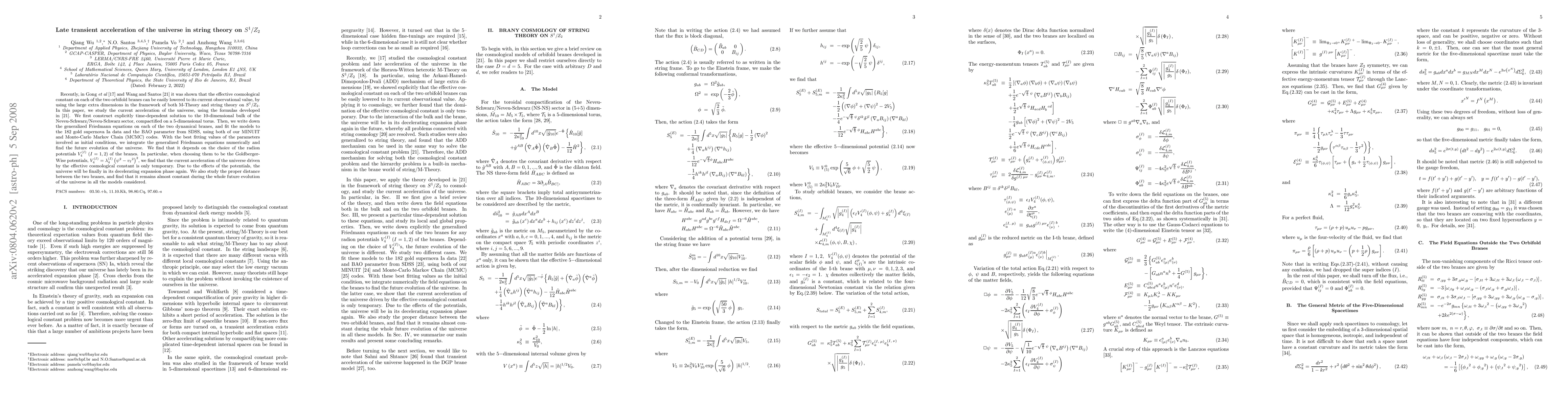 Recently, in Gong {\em et al} \cite{GWW07} and Wang and Santos \cite{WS07} it was shown that the effective cosmological constant on each of the two orbifold branes can be easily lowered to its current observational value, by using the large extra dimensions in the framework of both M-Theory and string theory on $S^{1}/Z_{2}$. In this paper, we study the current acceleration of the universe, using the formulas developed in \cite{WS07}. We first construct explicitly time-dependent solution to the 10-dimensional bulk of the Neveu-Schwarz/Neveu-Schwarz sector, compactified on a 5-dimensional torus. Then, we write down the generalized Friedmann equations on each of the two dynamical branes, and fit the models to the 182 gold supernova Ia data and the BAO parameter from SDSS, using both of our MINUIT and Monte-Carlo Markov Chain (MCMC) codes. With the best fitting values of the parameters involved as initial conditions, we integrate the generalized Friedmann equations numerically and find the future evolution of the universe. We find that it depends on the choice of the radion potentials $V_{4}^{(I)} (I = 1, 2)$ of the branes. In particular, when choosing them to be the Goldberger-Wise potentials, $V_{4}^{(I)} = \lambda_{4}^{(I)} (\psi^{2} - {v_{I}}^{2})^{2}$, we find that the current acceleration of the universe driven by the effective cosmological constant is only temporary. Due to the effects of the potentials, the universe will be finally in its decelerating expansion phase again. We also study the proper distance between the two branes, and find that it remains almost constant during the whole future evolution of the universe in all the models considered.