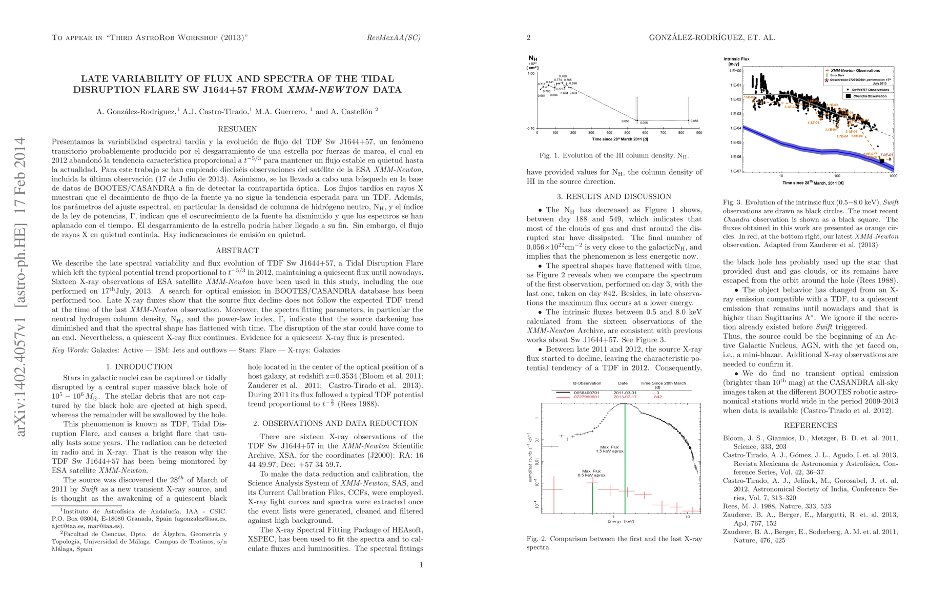 We describe the late spectral variability and flux evolution of TDF Sw J1644+57, a Tidal Disruption Flare which left the typical potential trend proportional to $t^{-5/3}$ in 2012, maintaining a quiescent flux until nowadays. Sixteen X-ray observations of ESA satellite \emph{XMM-Newton} have been used in this study, including the one performed on 17$^{\rm th}$July, 2013. A search for optical emission in BOOTES/CASANDRA database has been performed too. Late X-ray fluxes show that the source flux decline does not follow the expected TDF trend at the time of the last \emph{XMM-Newton} observation. Moreover, the spectra fitting parameters, in particular the neutral hydrogen column density, N$_{\rm H}$, and the power-law index, $\Gamma$, indicate that the source darkening has diminished and that the spectral shape has flattened with time. The disruption of the star could have come to an end. Nevertheless, a quiescent X-ray flux continues. Evidence for a quiescent X-ray flux is presented.