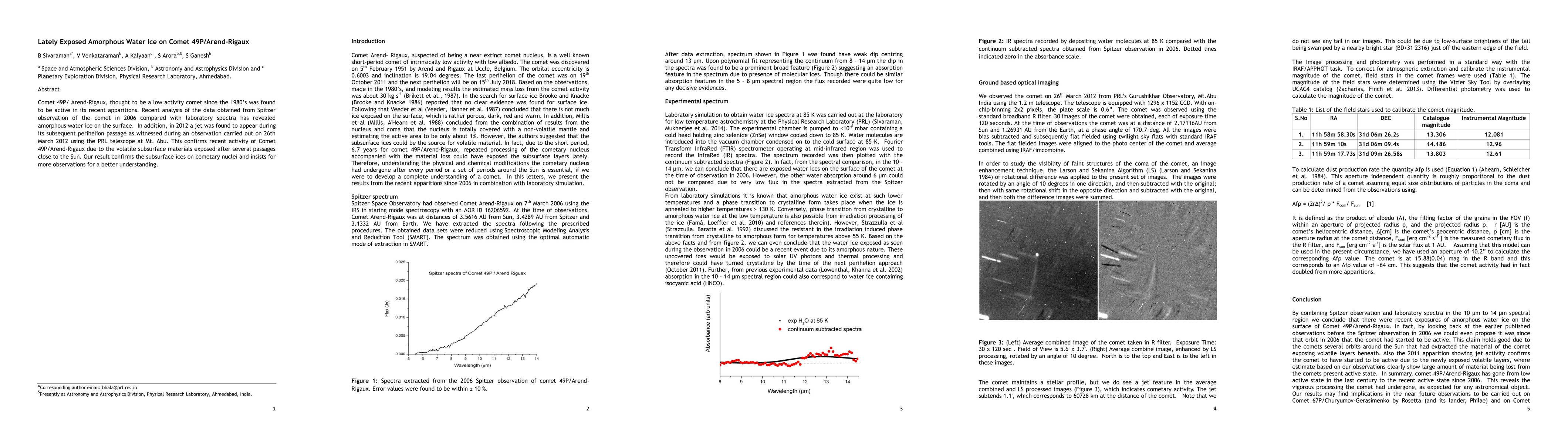 Comet 49P/ Arend-Rigaux, thought to be a low activity comet since the 1980's was found to be active in its recent apparitions. Recent analysis of the data obtained from Spitzer observation of the comet in 2006 compared with laboratory spectra has revealed amorphous water ice on the surface. In addition, in 2012 a jet was found to appear during its subsequent perihelion passage as witnessed during an observation carried out on 26th March 2012 using the PRL telescope at Mt. Abu. This confirms recent activity of Comet 49P/Arend-Rigaux due to the volatile subsurface materials exposed after several passages close to the Sun. Our result confirms the subsurface ices on cometary nuclei and insists for more observations for a better understanding.