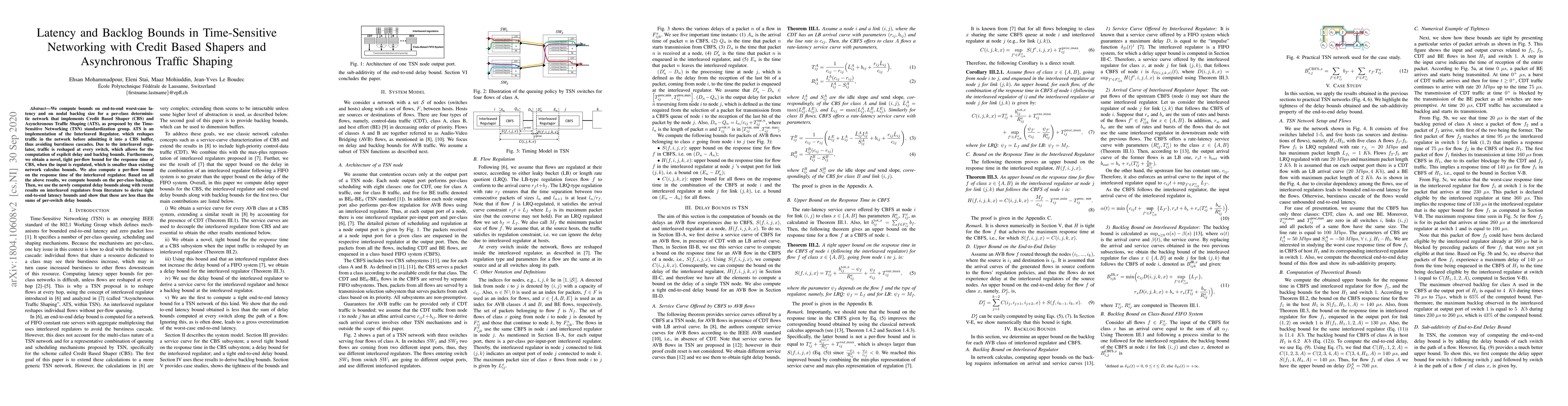 This paper computes bounds on end-to-end latency and nodal backlog for a Time-Sensitive Networking (TSN) system using Credit Based Shaper (CBS) and Asynchronous Traffic Shaping (ATS). It introduces tighter per-flow response time bounds for CBS and interleaved regulator, leading to improved end-to-end latency bounds.