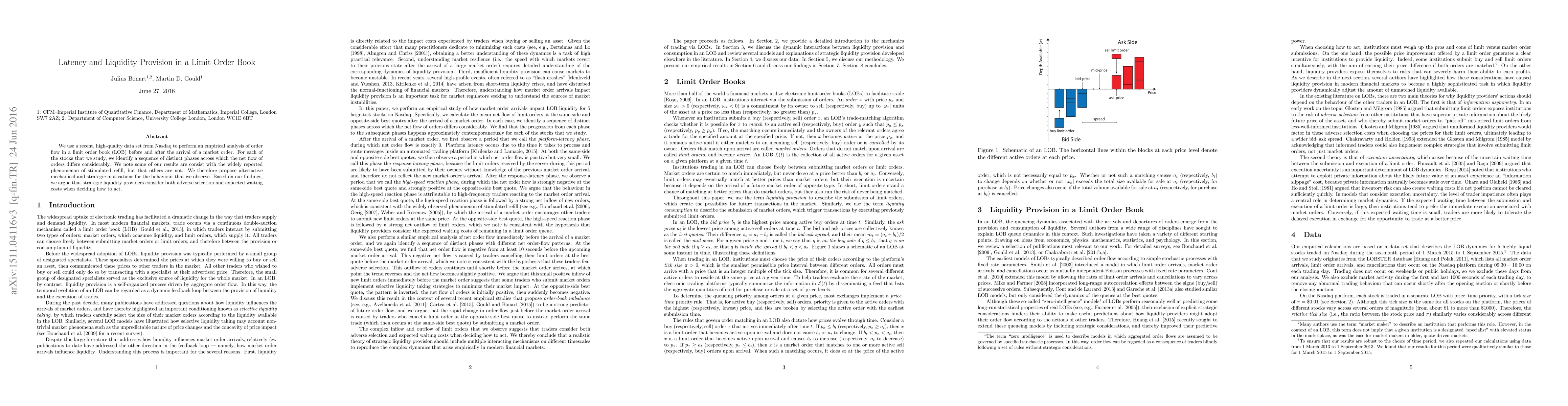We use a recent, high-quality data set from Nasdaq to perform an empirical analysis of order flow in a limit order book (LOB) before and after the arrival of a market order. For each of the stocks that we study, we identify a sequence of distinct phases across which the net flow of orders differs considerably. We note some of our results are consist with the widely reported phenomenon of stimulated refill, but that others are not. We therefore propose alternative mechanical and strategic motivations for the behaviour that we observe. Based on our findings, we argue that strategic liquidity providers consider both adverse selection and expected waiting costs when deciding how to act.