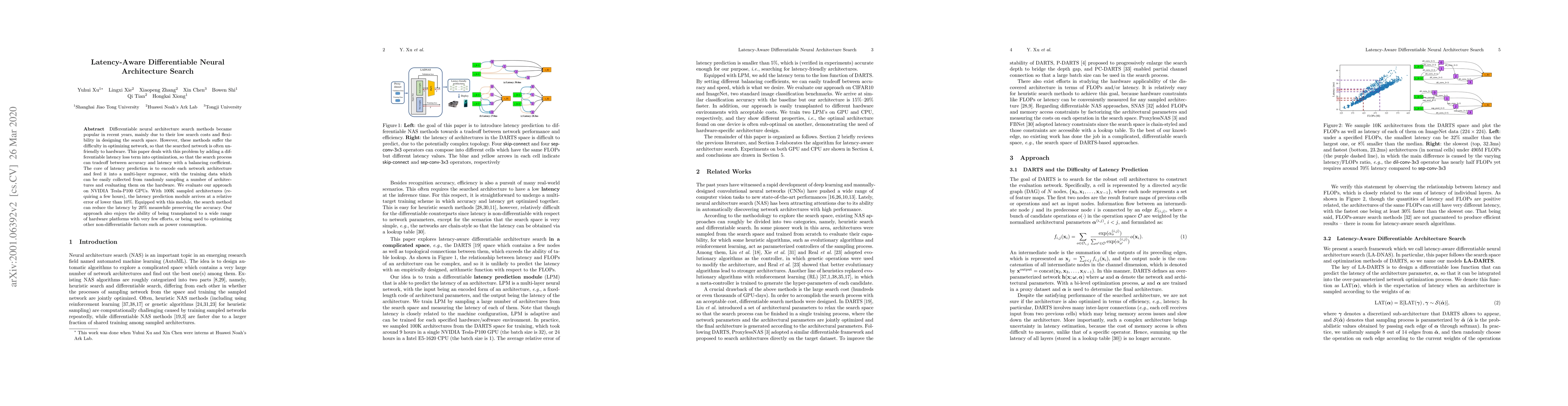 This paper proposes a latency-aware differentiable neural architecture search method that integrates a latency loss term into the optimization process, balancing accuracy and latency. It uses a multi-layer regressor for latency prediction trained on sampled architectures evaluated on hardware, achieving a relative error of less than 10%. The method reduces latency by 20% while maintaining accuracy and is easily transplantable across different hardware platforms.