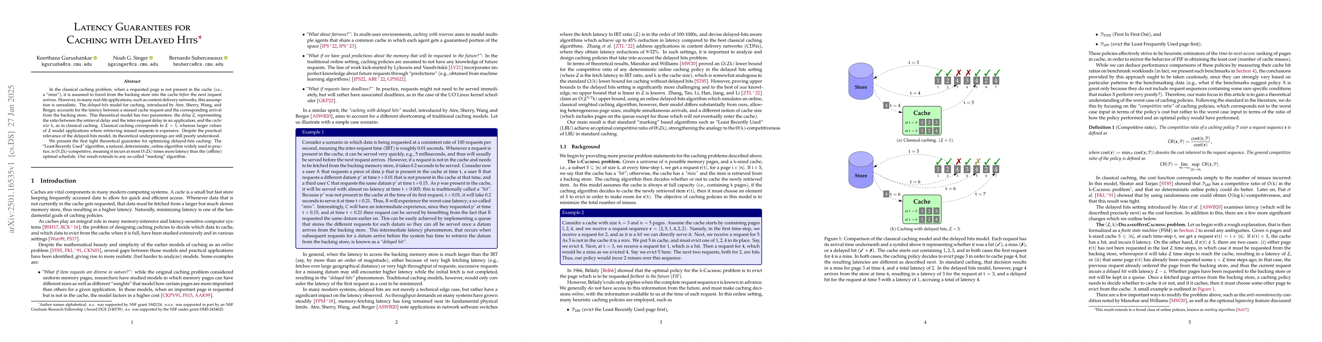 In the classical caching problem, when a requested page is not present in the cache (i.e., a "miss"), it is assumed to travel from the backing store into the cache "before" the next request arrives. However, in many real-life applications, such as content delivery networks, this assumption is unrealistic. The "delayed-hits" model for caching, introduced by Atre, Sherry, Wang, and Berger, accounts for the latency between a missed cache request and the corresponding arrival from the backing store. This theoretical model has two parameters: the "delay" $Z$, representing the ratio between the retrieval delay and the inter-request delay in an application, and the "cache size" $k$, as in classical caching. Classical caching corresponds to $Z=1$, whereas larger values of $Z$ model applications where retrieving missed requests is expensive. Despite the practical relevance of the delayed-hits model, its theoretical underpinnings are still poorly understood. We present the first tight theoretical guarantee for optimizing delayed-hits caching: The "Least Recently Used" algorithm, a natural, deterministic, online algorithm widely used in practice, is $O(Zk)$-competitive, meaning it incurs at most $O(Zk)$ times more latency than the (offline) optimal schedule. Our result extends to any so-called "marking" algorithm.