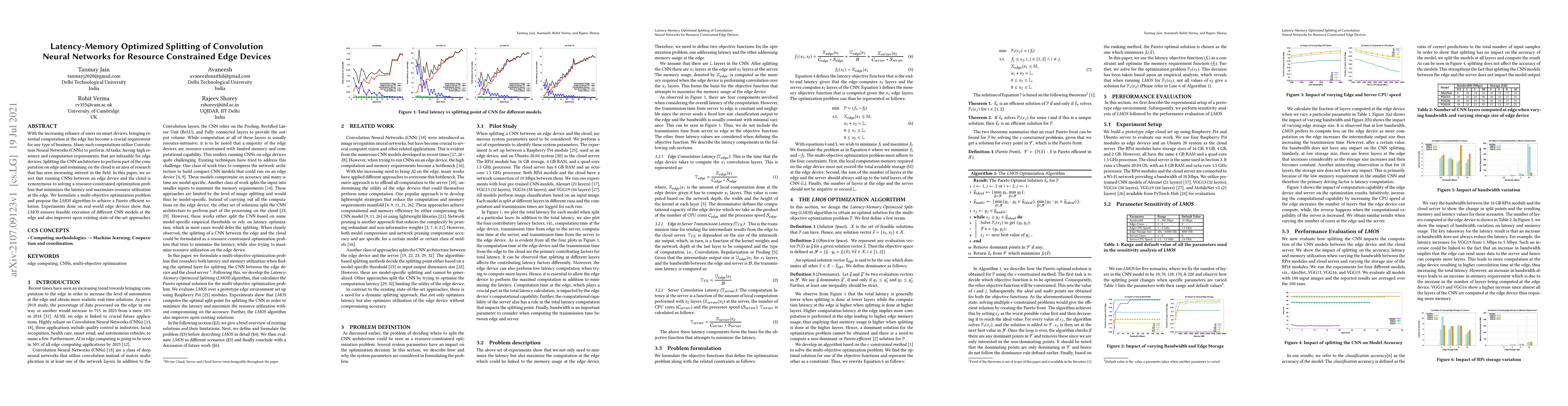 With the increasing reliance of users on smart devices, bringing essential computation at the edge has become a crucial requirement for any type of business. Many such computations utilize Convolution Neural Networks (CNNs) to perform AI tasks, having high resource and computation requirements, that are infeasible for edge devices. Splitting the CNN architecture to perform part of the computation on edge and remaining on the cloud is an area of research that has seen increasing interest in the field. In this paper, we assert that running CNNs between an edge device and the cloud is synonymous to solving a resource-constrained optimization problem that minimizes the latency and maximizes resource utilization at the edge. We formulate a multi-objective optimization problem and propose the LMOS algorithm to achieve a Pareto efficient solution. Experiments done on real-world edge devices show that, LMOS ensures feasible execution of different CNN models at the edge and also improves upon existing state-of-the-art approaches.
