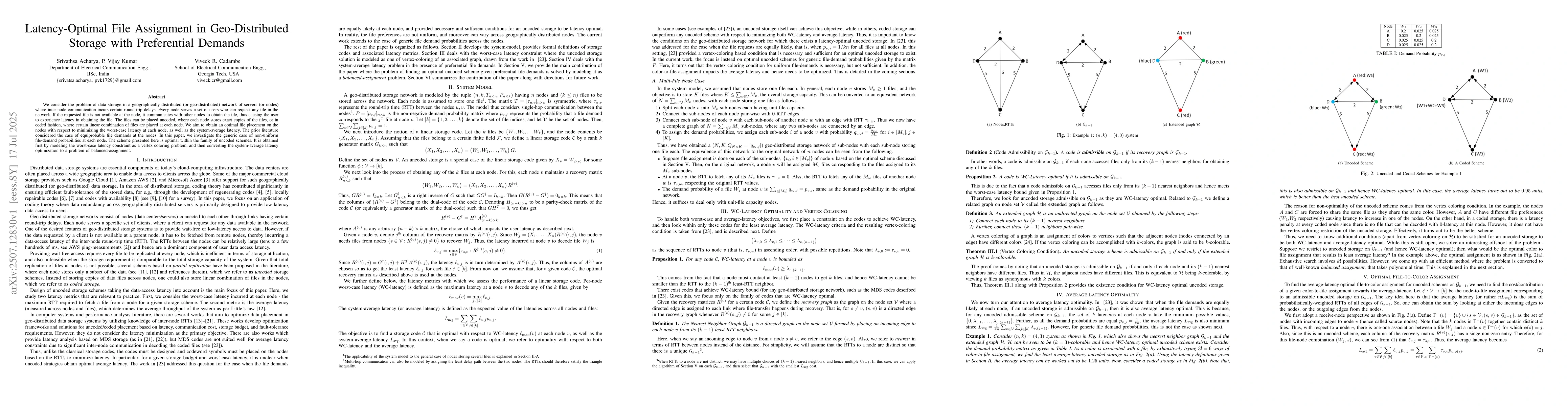 We consider the problem of data storage in a geographically distributed (or geo-distributed) network of servers (or nodes) where inter-node communication incurs certain round-trip delays. Every node serves a set of users who can request any file in the network. If the requested file is not available at the node, it communicates with other nodes to obtain the file, thus causing the user to experience latency in obtaining the file. The files can be placed uncoded, where each node stores exact copies of the files, or in coded fashion, where certain linear combination of files are placed at each node. We aim to obtain an optimal file placement on the nodes with respect to minimizing the worst-case latency at each node, as well as the system-average latency. The prior literature considered the case of equiprobable file demands at the nodes. In this paper, we investigate the generic case of non-uniform file-demand probabilities at each node. The scheme presented here is optimal within the family of uncoded schemes. It is obtained first by modeling the worst-case latency constraint as a vertex coloring problem, and then converting the system-average latency optimization to a problem of balanced-assignment.