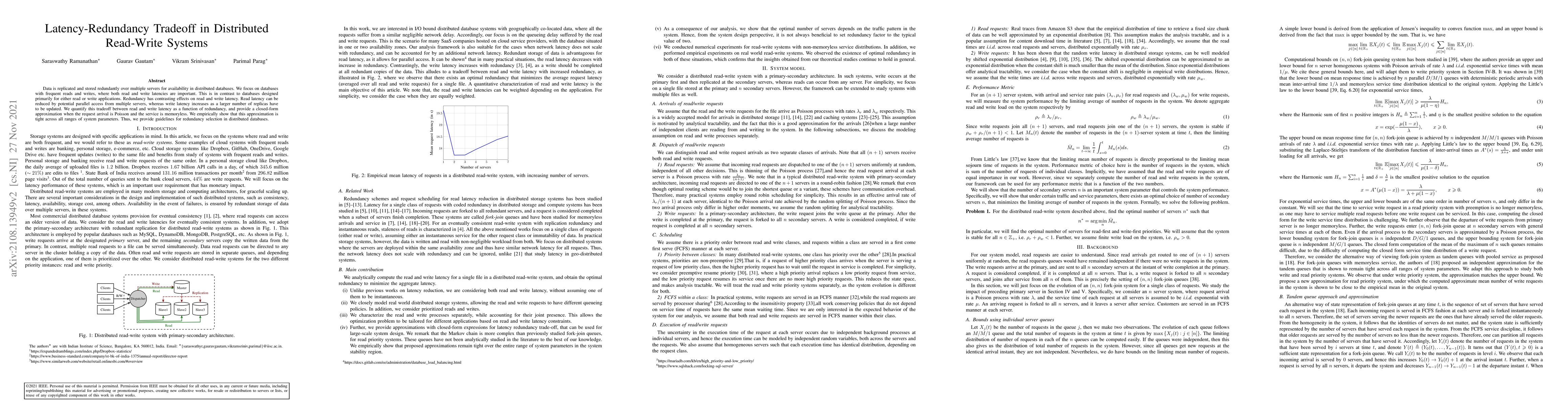 This paper examines the latency-redundancy tradeoff in distributed read-write systems, quantifying how redundancy affects read and write latencies differently. It provides a closed-form approximation for the tradeoff under Poisson request arrival and memoryless service, validated by empirical evidence, to guide optimal redundancy selection in databases.