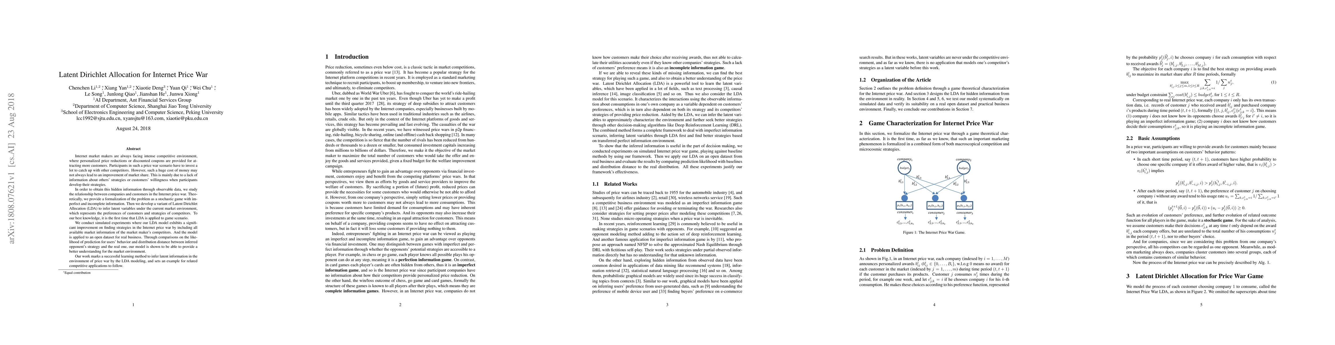 This research paper applies Latent Dirichlet Allocation to analyze internet price wars, revealing a model that significantly improves strategy finding with market information and providing a better understanding of the market environment.