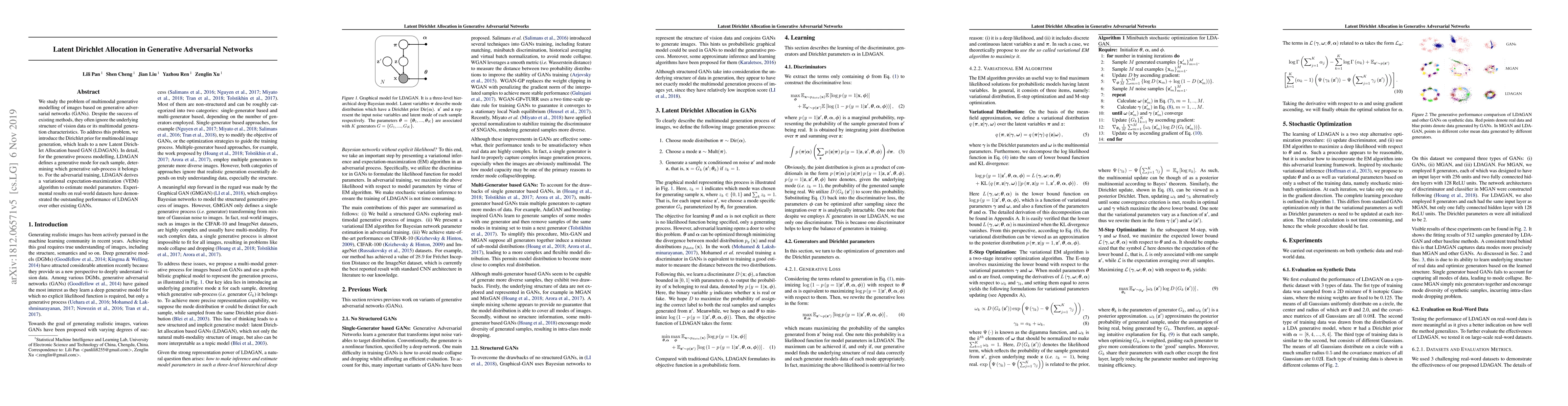 This paper proposes LDAGAN, a novel Latent Dirichlet Allocation based GAN for multimodal image generation, which uses a Dirichlet prior to model the underlying structure of vision data. LDAGAN defines generative modes for each sample and employs a variational expectation-maximization algorithm for adversarial training, showing superior performance over other GANs in experiments.