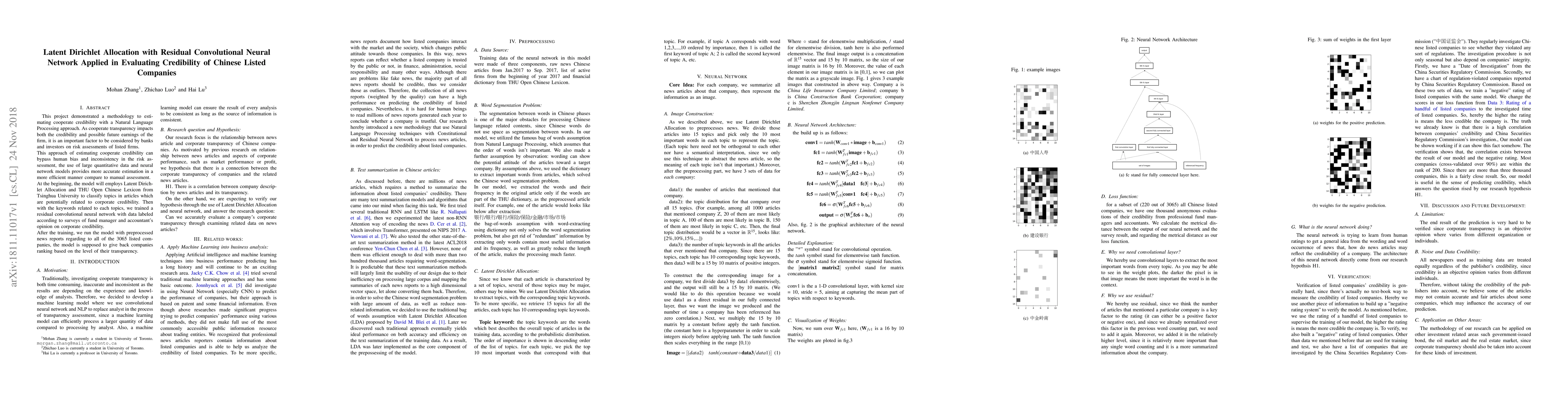 This project demonstrated a methodology to estimating cooperate credibility with a Natural Language Processing approach. As cooperate transparency impacts both the credibility and possible future earnings of the firm, it is an important factor to be considered by banks and investors on risk assessments of listed firms. This approach of estimating cooperate credibility can bypass human bias and inconsistency in the risk assessment, the use of large quantitative data and neural network models provides more accurate estimation in a more efficient manner compare to manual assessment. At the beginning, the model will employs Latent Dirichlet Allocation and THU Open Chinese Lexicon from Tsinghua University to classify topics in articles which are potentially related to corporate credibility. Then with the keywords related to each topics, we trained a residual convolutional neural network with data labeled according to surveys of fund manager and accountant's opinion on corporate credibility. After the training, we run the model with preprocessed news reports regarding to all of the 3065 listed companies, the model is supposed to give back companies ranking based on the level of their transparency.