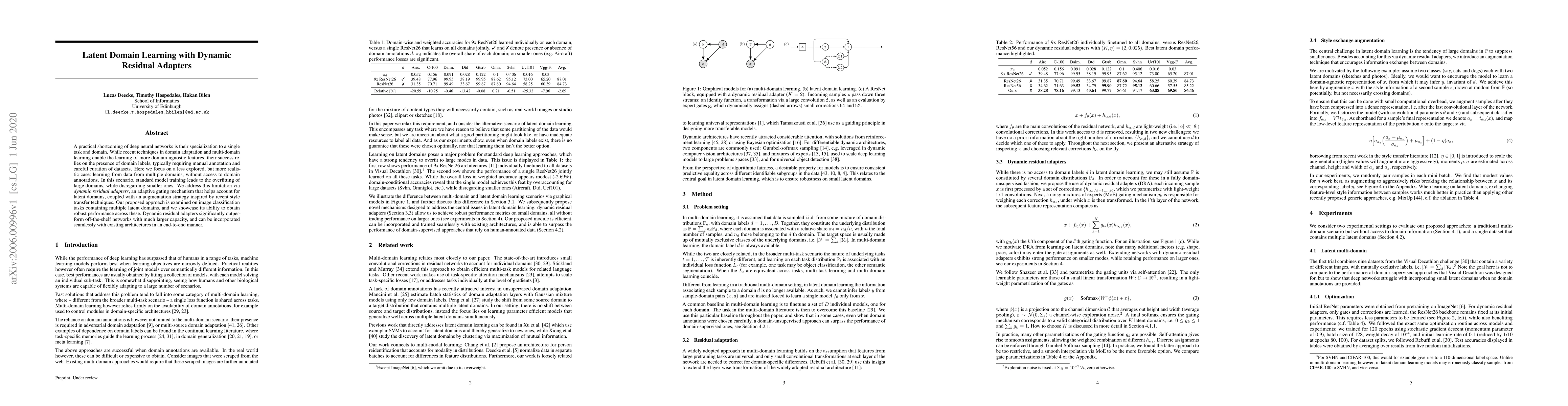 Researchers developed a method to improve deep neural networks' ability to learn from multiple domains without domain annotations. Their approach, dynamic residual adapters, achieves robust performance in image classification tasks across latent domains.