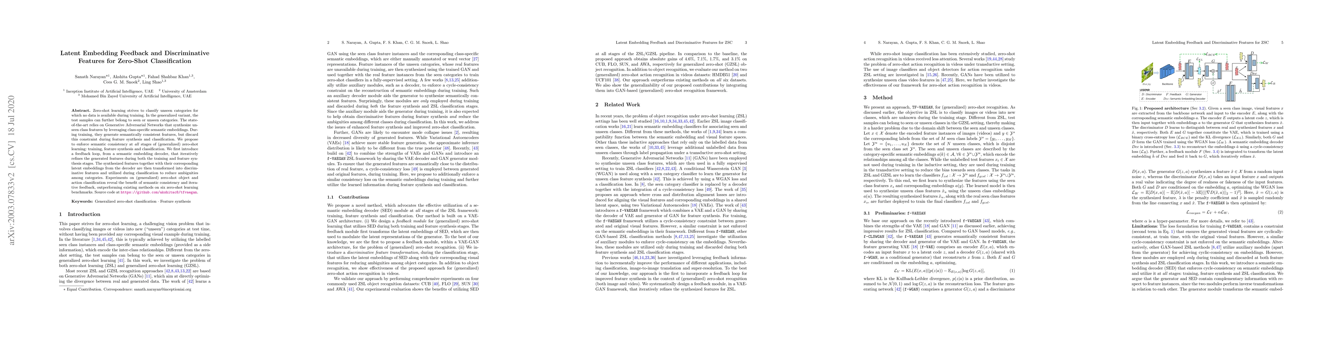This paper proposes a new approach for zero-shot learning that incorporates semantic consistency throughout training, feature synthesis, and classification, achieving better performance on six benchmarks.