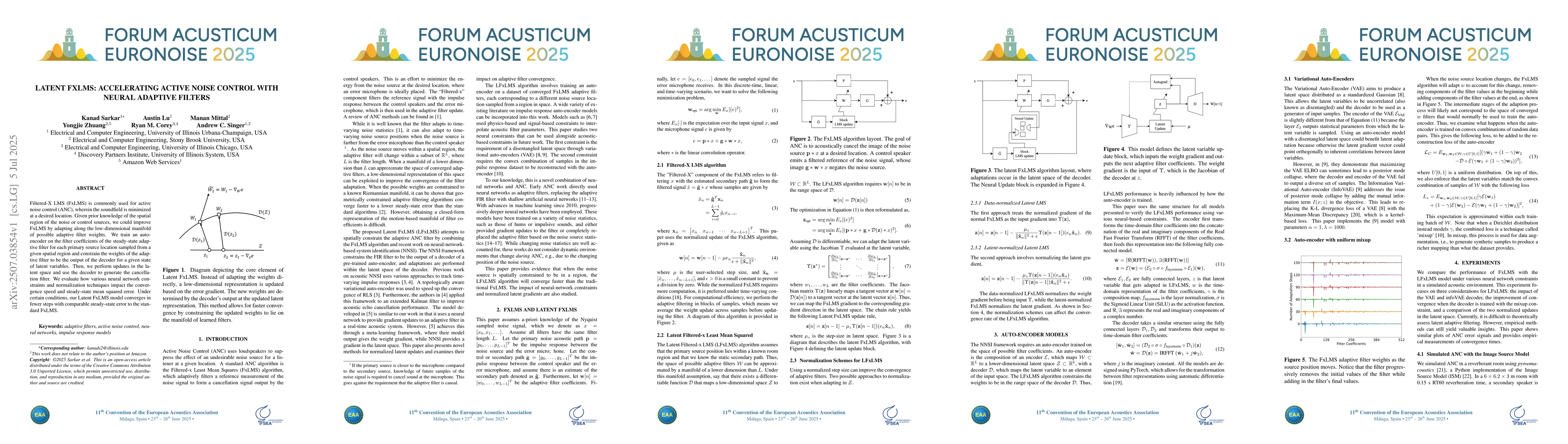 Filtered-X LMS (FxLMS) is commonly used for active noise control (ANC), wherein the soundfield is minimized at a desired location. Given prior knowledge of the spatial region of the noise or control sources, we could improve FxLMS by adapting along the low-dimensional manifold of possible adaptive filter weights. We train an auto-encoder on the filter coefficients of the steady-state adaptive filter for each primary source location sampled from a given spatial region and constrain the weights of the adaptive filter to be the output of the decoder for a given state of latent variables. Then, we perform updates in the latent space and use the decoder to generate the cancellation filter. We evaluate how various neural network constraints and normalization techniques impact the convergence speed and steady-state mean squared error. Under certain conditions, our Latent FxLMS model converges in fewer steps with comparable steady-state error to the standard FxLMS.