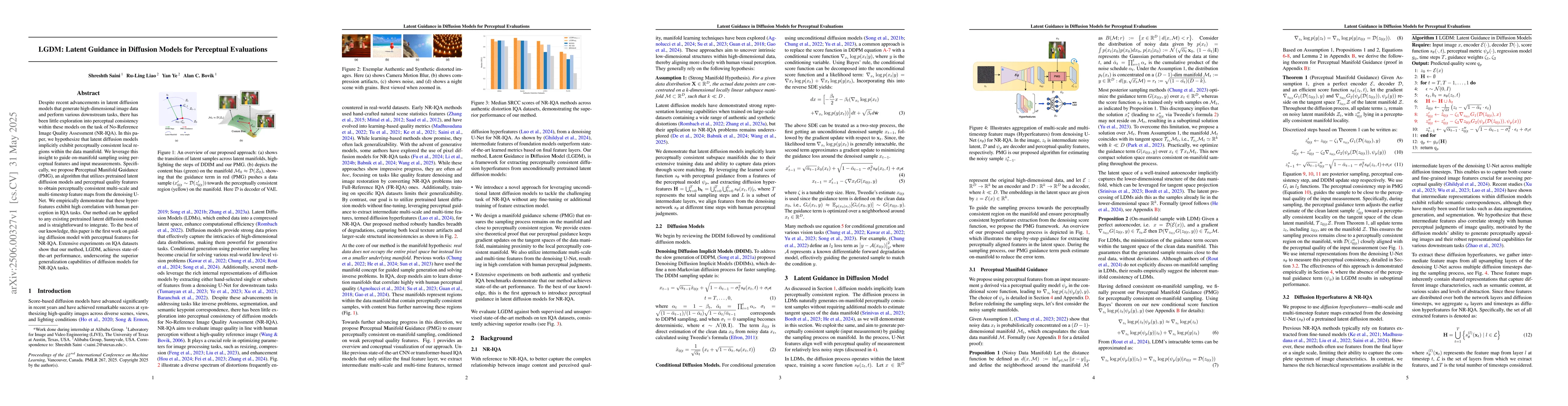 Despite recent advancements in latent diffusion models that generate high-dimensional image data and perform various downstream tasks, there has been little exploration into perceptual consistency within these models on the task of No-Reference Image Quality Assessment (NR-IQA). In this paper, we hypothesize that latent diffusion models implicitly exhibit perceptually consistent local regions within the data manifold. We leverage this insight to guide on-manifold sampling using perceptual features and input measurements. Specifically, we propose Perceptual Manifold Guidance (PMG), an algorithm that utilizes pretrained latent diffusion models and perceptual quality features to obtain perceptually consistent multi-scale and multi-timestep feature maps from the denoising U-Net. We empirically demonstrate that these hyperfeatures exhibit high correlation with human perception in IQA tasks. Our method can be applied to any existing pretrained latent diffusion model and is straightforward to integrate. To the best of our knowledge, this paper is the first work on guiding diffusion model with perceptual features for NR-IQA. Extensive experiments on IQA datasets show that our method, LGDM, achieves state-of-the-art performance, underscoring the superior generalization capabilities of diffusion models for NR-IQA tasks.
