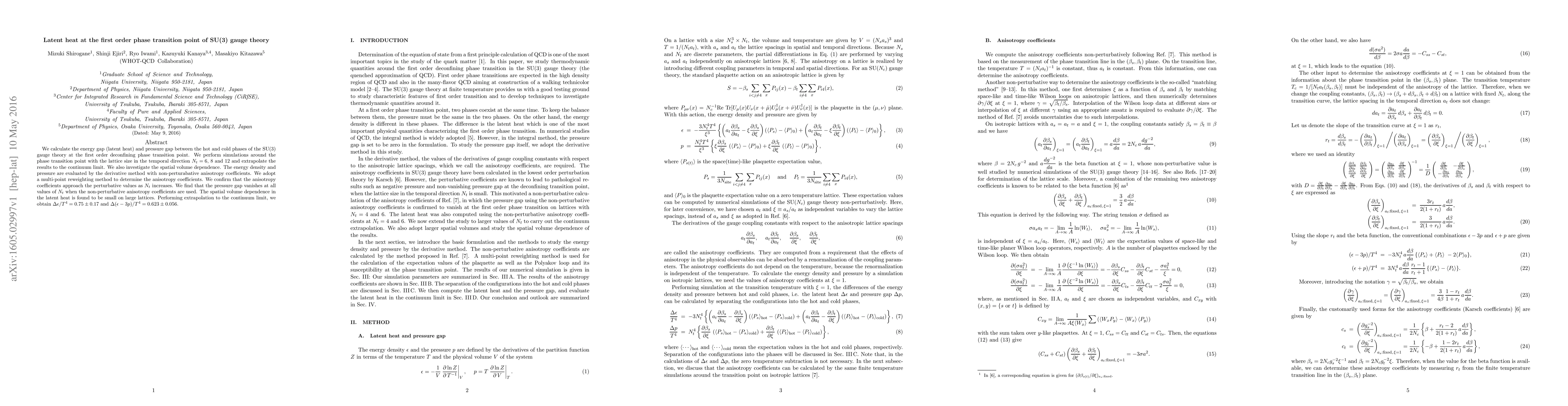 Researchers studied a phase transition in SU(3) gauge theory and found that pressure gaps vanish at large lattices, with predicted latent heat values of 0.75 and 0.623 in the continuum limit.
